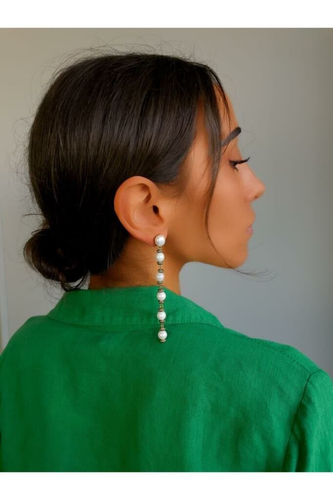 Fad İnci Küpe, minimalist ve sofistike bir tasarımın mükemmel bir yansımasıdır. İnci ve 22 ayar altın kaplama pirinç halkaların ustaca sıralanmasıyla elde edilen lineer estetik, sadeliği ve zarafeti bir araya getiriyor. Fad İnci Küpe, doğal ışıltısıyla göz dolduran incinin, altın kaplamalı pirinçle olan mükemmel uyumu sayesinde hem gündelik kullanımda hem de özel anlarda vazgeçilmez bir parçanız olacak. Modern ve zamansız bir şıklığın anahtarıdır.
