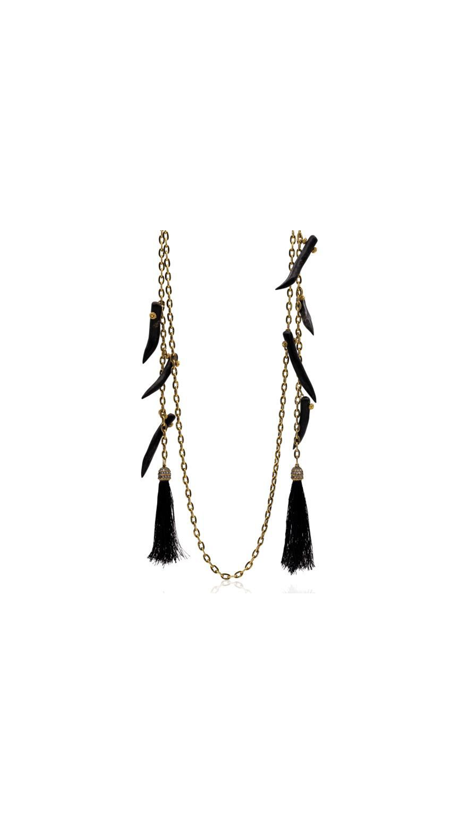 Fildişi Doğal Taş Kolye, doğanın güzelliğini ve mistik enerjisini yansıtan bir tasarım harikasıdır. Zerafetin ve gücün simgesi olan fildişi sembolleri, siyah oniks taşından ustalıkla işlenmiş ve 22 ayar altın kaplama pirinç zincire zarif bir ritimle dizilmiştir. Bu 115 cm uzunluğundaki Fildişi Doğal Taş Kolye'nin her iki ucunda yer alan siyah püsküller, hareket kazandırdığı gibi, tasarıma bir o kadar da asil bir dokunuş ekler. Hem gündüz hem de gece kullanımı için ideal olan Fildişi Doğal Taş Kolye, kendine has stilini ortaya koymak isteyen kadınlar için vazgeçilmez bir aksesuar olacaktır.