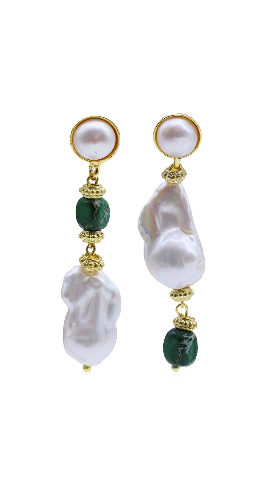 22 ayar altın kaplama pirinç, barok inci, yeşim taşı