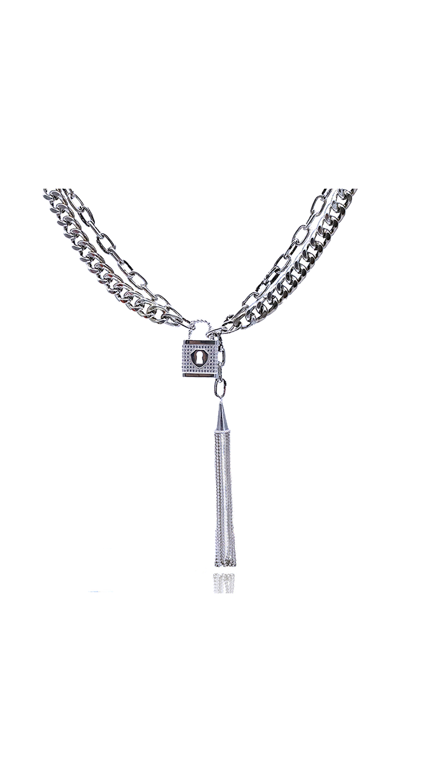Üretim Şekli : El YapımıMateryal : 925 ayar gümüş kilit, 925 ayar gümüş püskül, 925 ayar gümüş zincirUzunluk : 40 cm + 5 cmAğırlık : 132 gr