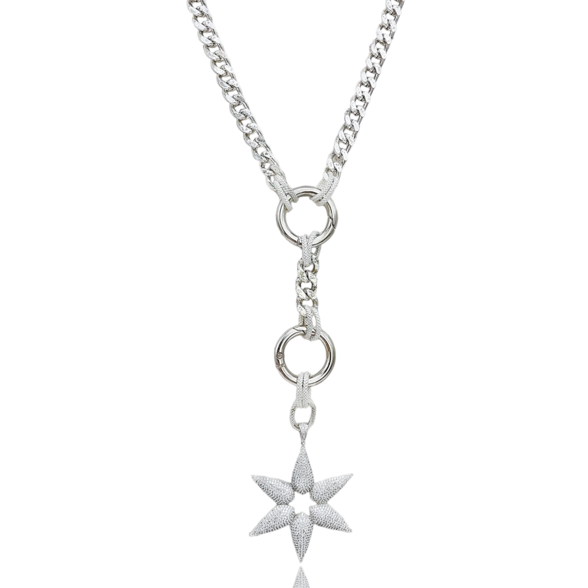 SITORA Gümüş Kaplama Yıldız Kolye, gökyüzünün gizemini ve yıldızların parıltısını boynunuza taşıyan zarif bir aksesuardır. 925 ayar gümüş kaplama pirinç zincirin, ışıltısı ve sağlamlığı sayesinde her anınıza eşlik ederken, zincirlerin kesişme noktasındaki halka, hayatınızdaki bağlantıları ve sürekliliği temsil eder. Bu merkezi halkadan zarifçe sarkan bir başka halka ve onun ucundaki yıldız sembolü, gece göğünün büyüsünü ve umudun ışığını simgeler. Yıldızın her bir köşesi, ışıltılarıyla göz kamaştıran zirkon taşlarla süslendiği için, SITORA Gümüş Kaplama Yıldız Kolye hareket ettiğinde etrafına narin parıltılar saçar. SITORA Gümüş Kaplama Yıldız Kolye, günlük giyimden özel gecelere kadar her türlü kıyafeti tamamlayacak ve sizi yıldızlar arasında parlayan bir gök cismini andıran bir görünüme kavuşturacak.