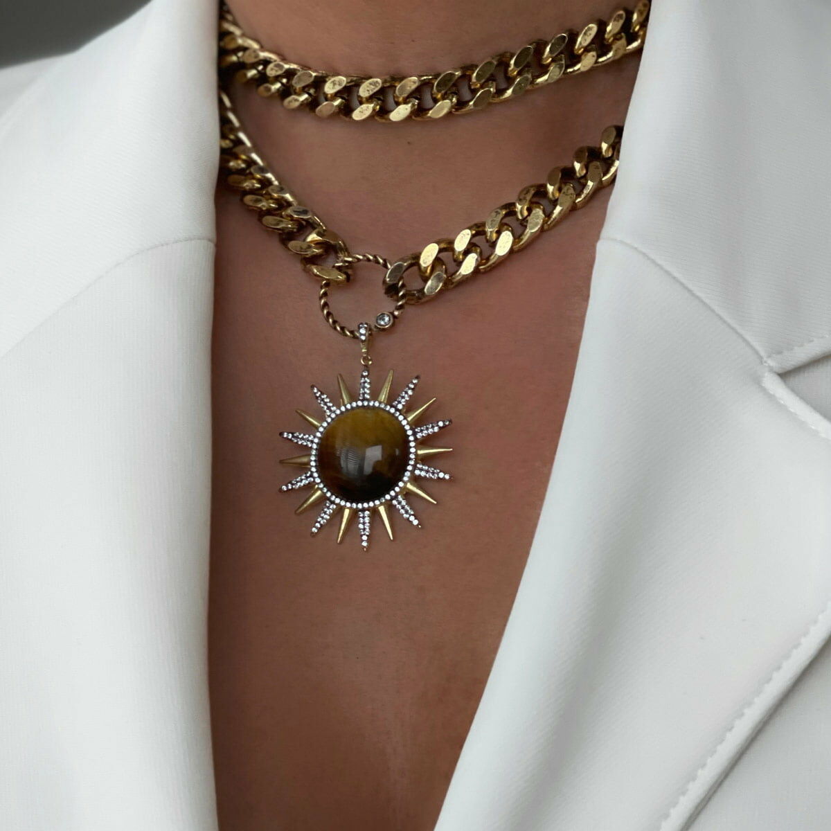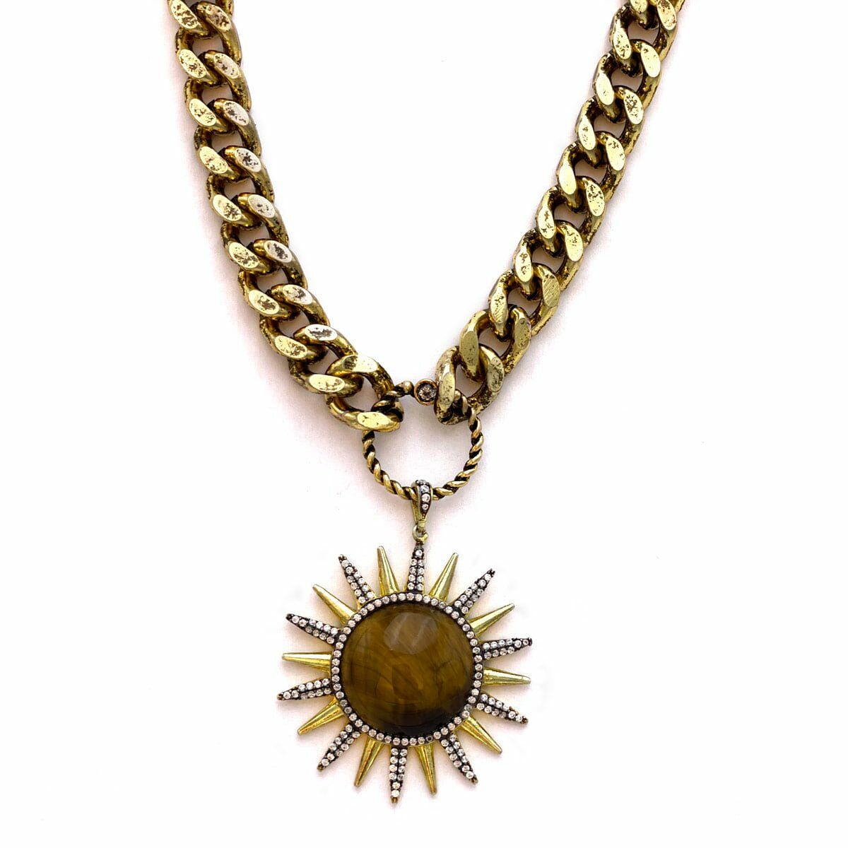 22 ayar altın kaplama pirinç, kaplan gözü taşı