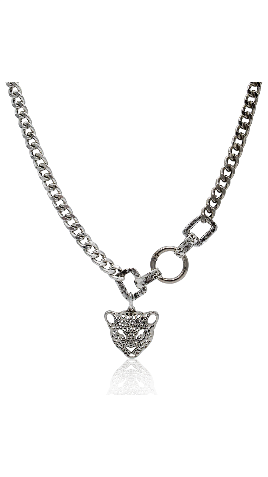 TIGRE Zincir Kolye, iki şık varyantla geliyor. İlki 925 ayar gümüş kaplama pirinç zincirden oluşuyor ve göz alıcı bir gümüş kaplama kaplan sembolü taşıyor. Diğer opsiyon ise 22 ayar altın kaplama pirinç zincir ve altın kaplama kaplan sembolünden tasarlanmıştır. TIGRE Zincir Kolye, cesaretin, bağımsızlığın ve gücün simgesi olan kaplanı stilinize eklemenin mükemmel yolunu sunuyor. Güçlü bir sembolizm taşıyan bu kolye, her iki varyantıyla da her türlü özel anınızda dikkat çekecek. Tigre Zincir Kolye ile gücünüzü ve zarafetinizi sergileyin.