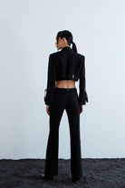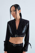 Vegan deri kemer köprülü, düşük-orta belli kemerli pantolon.