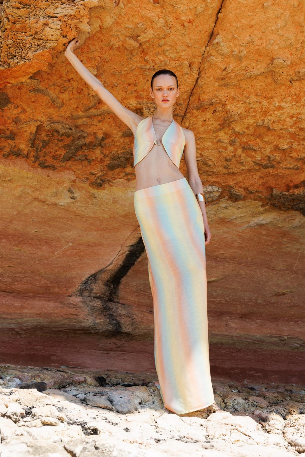 Gold Aksesuarlı Sırtı Lastikli Büstiyer ve Etek Takım