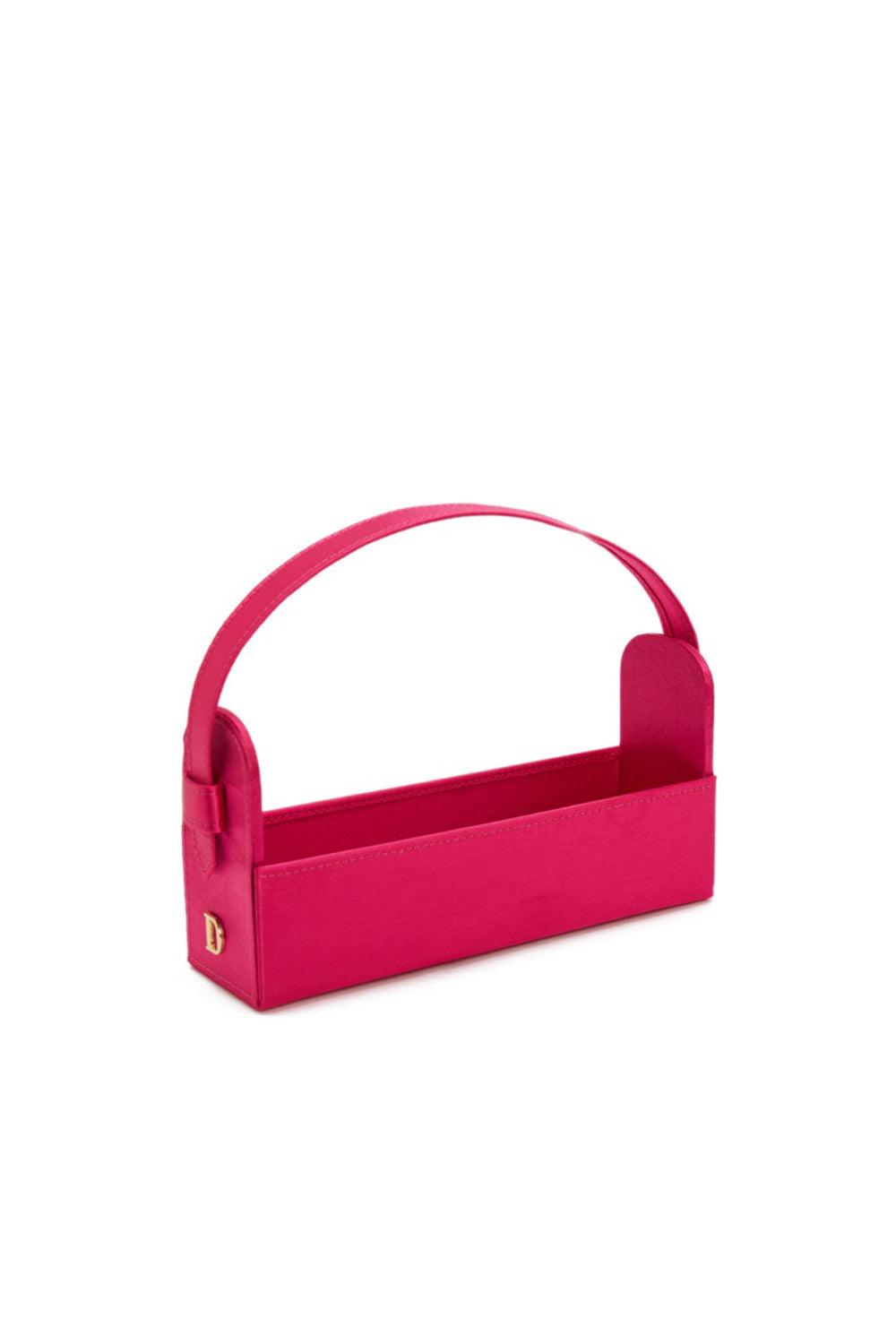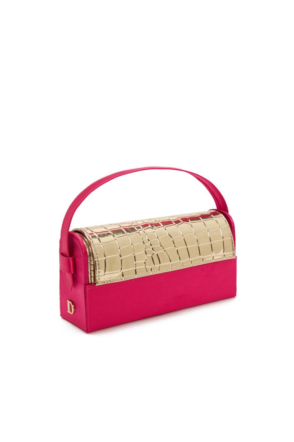 Çıkarılabilir çanta sapı mevcuttur. 2 ayrı parçadan oluşur. 2 çeşit kullanım özelliği vardır. Manyetik kapatmalı ve gold amblem detaylı , Gold & Fuşya renkli çantadır. Toz torbası ile birlikte gelir