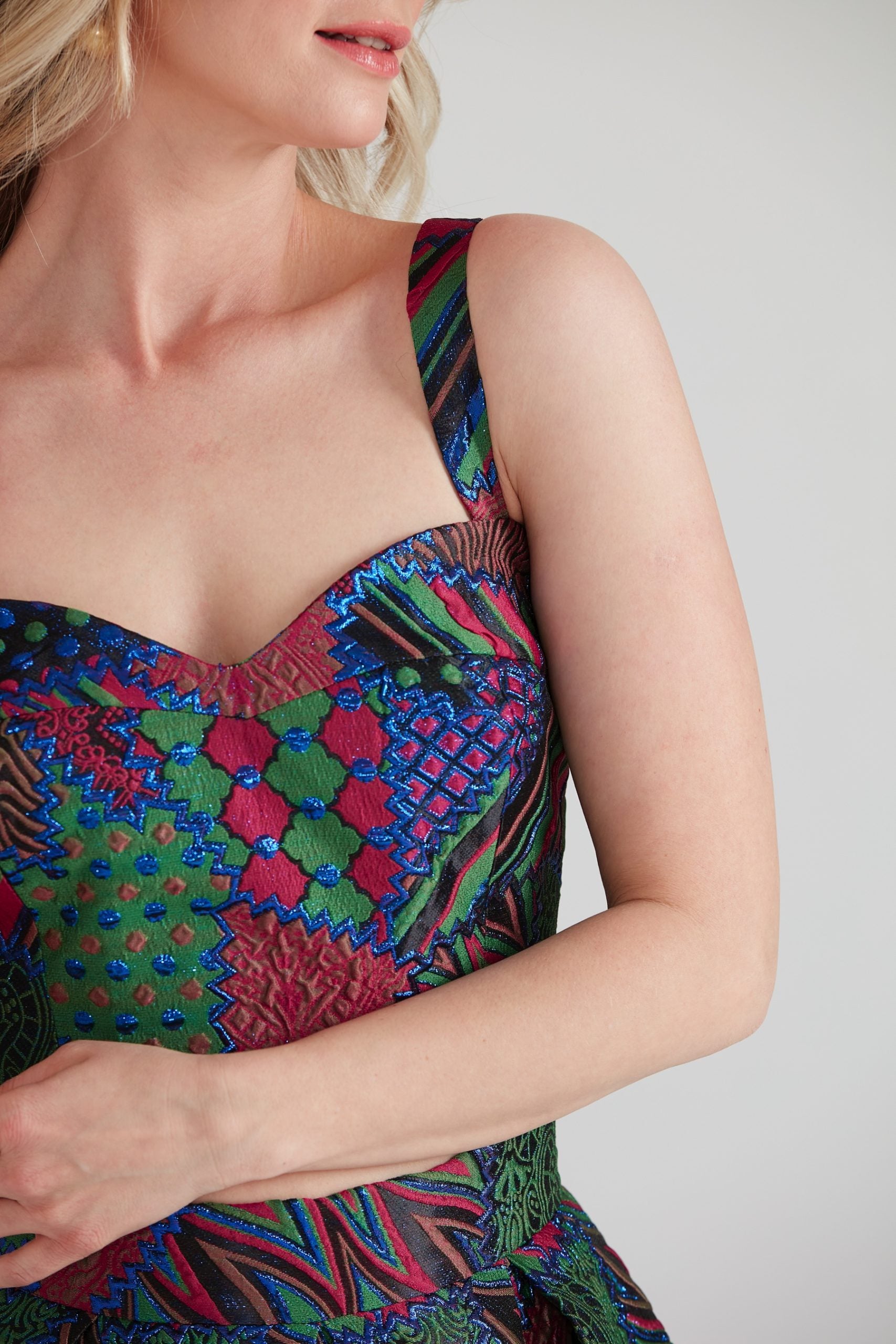 %100 PES Brokar kumaş genellikle pamuk, ipek veya polyester gibi liflerden yapılan ve yüzeyinde desenli bir dokuma deseni olan bir tür kumaştır. Bu desen genellikle parlak bir görünüme sahiptir ve altındaki kumaşın renk ve doku ile kontrast oluşturmasını sağlar. Beden Ölçüsü: