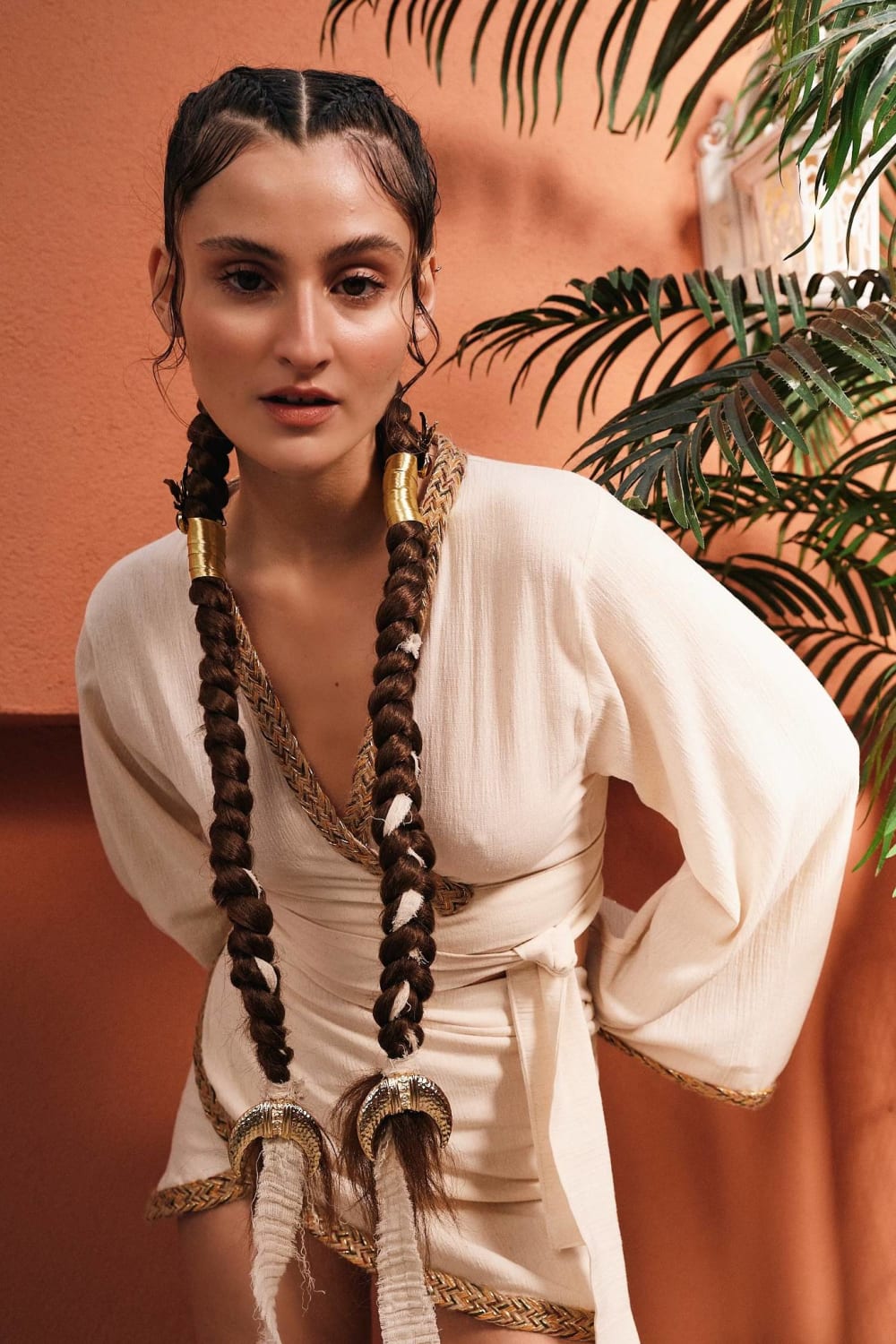 Tezgah dokuma şile bezi kumaştan özel olarak Eclectic atölyesinde üretilmiştir.Kenarları hasır şerit ile geçilmiştir.Üst;-oversize bir kalıba sahiptir.-uzun bir bağlama kemeri bulunmaktadır.Etek;-pareo modelindedir.-kruvaze şekilde bağlanarak giyilebilir.
