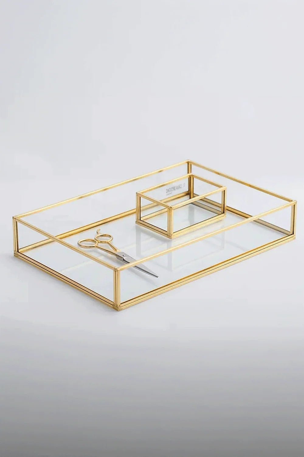 3 Parça Pirinç Gold Nişan Takımı Damat Kahvesi Sunum Tepsisi Yüzük Kutusu Makas