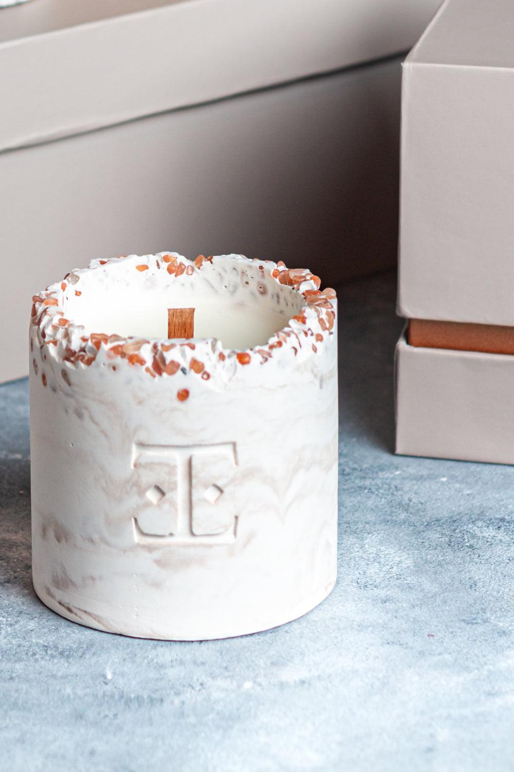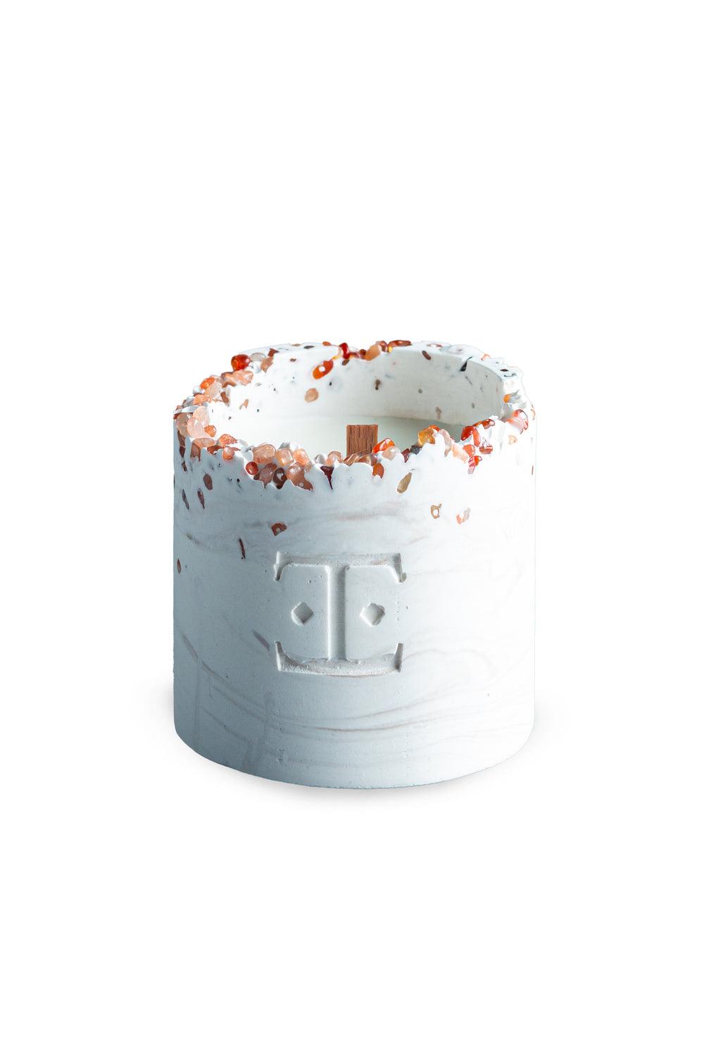 Her biri el yapımı olan Sun & Fig mumları ile güneşin ışıltısına ve incirin tatlı cazibesine adım atın. Güneş ışığının parıltısı, incirin ferahlığı ve hafif odunsu aromasıyla mumunuz ortama taptaze bir hava katacak. Portakal ve bergamotun lezzetli notaları sizi güneşle buluşan bir sabahın sıcaklığıyla karşılarken, sedir ve sandal ağacının nazik ve sakinleştirici dokunuşları gerçek bir mutluluk aurası yaratacak.