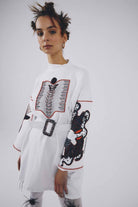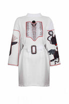 The sleeves feature embroidered details and are designed with full sleeves. With these features, the dress becomes a truly special and eye-catching piece. You can wear it with the original belt buckle of the dress or combine it with another leather belt.