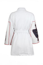 Material & Care The dress is made from high-quality cotton fabric. The belt buckle is made entirely of special stones, and the hand-stitched bead embroidery can be found on the sleeves and chest details. The dress predominantly uses red and black colors for its design and details.