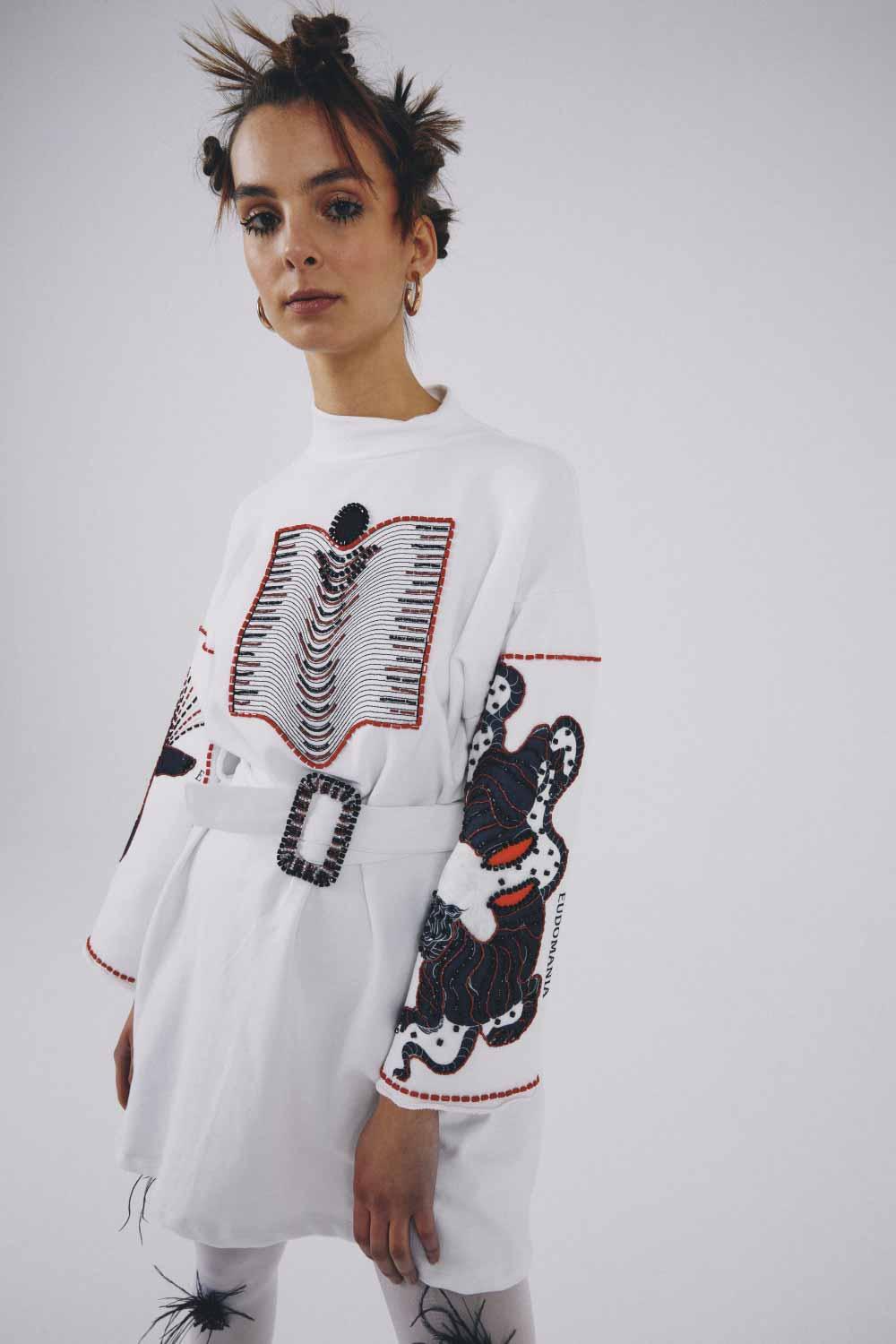 The Altitud dress features a straight cut and a sporty patterned design. It is detailed with a specially embroidered removable belt buckle and bead embroidery. This dress can be worn with or without the belt, made from fine, high-quality fabric that is stretchy and moisture-wicking.