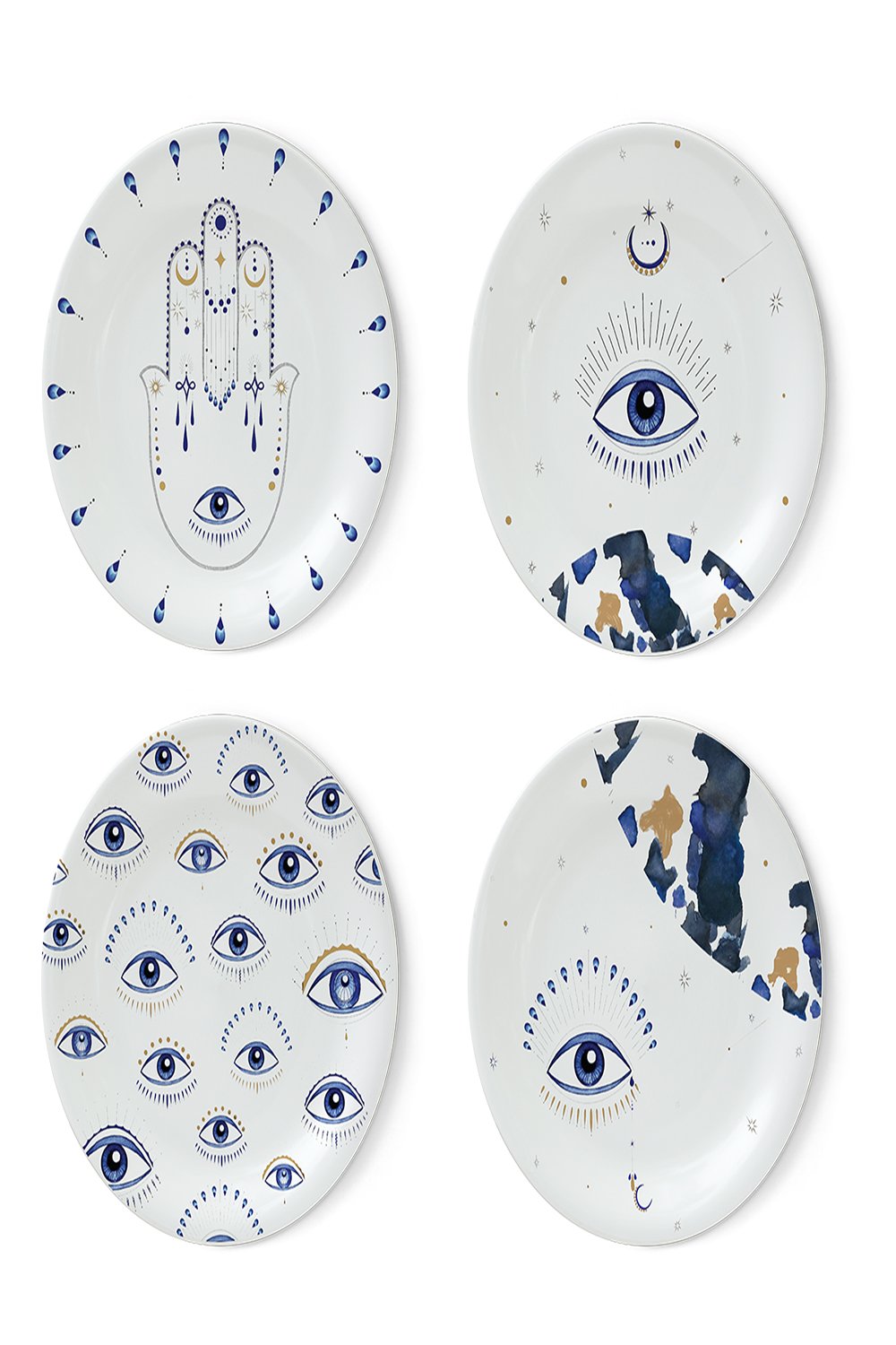Porselen Spirit Eye Collection aperitif tabağı, 4 parçadan oluşur.