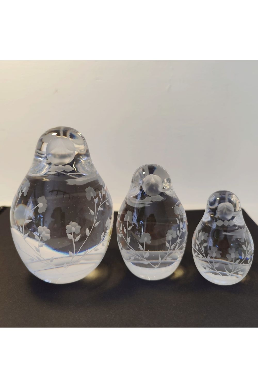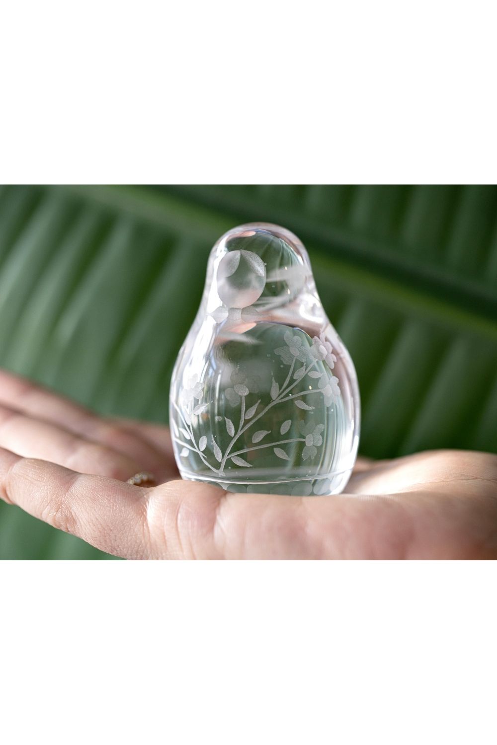 Elde şekillendirilmiş sıcak cam üzeri, gravür desenli cam matruşka obje