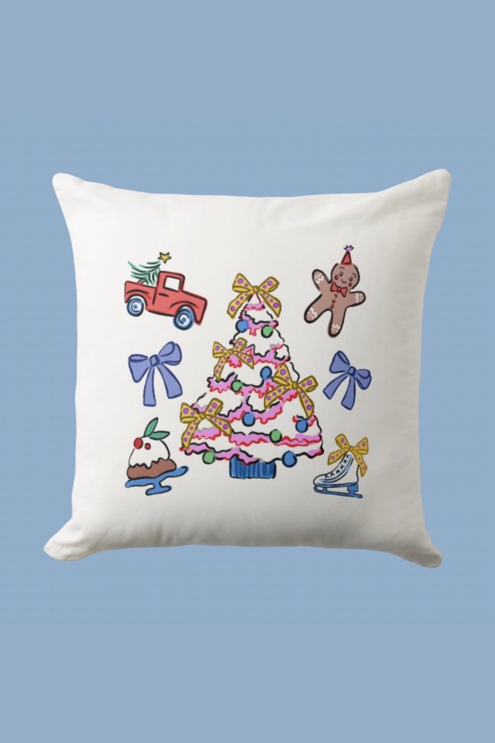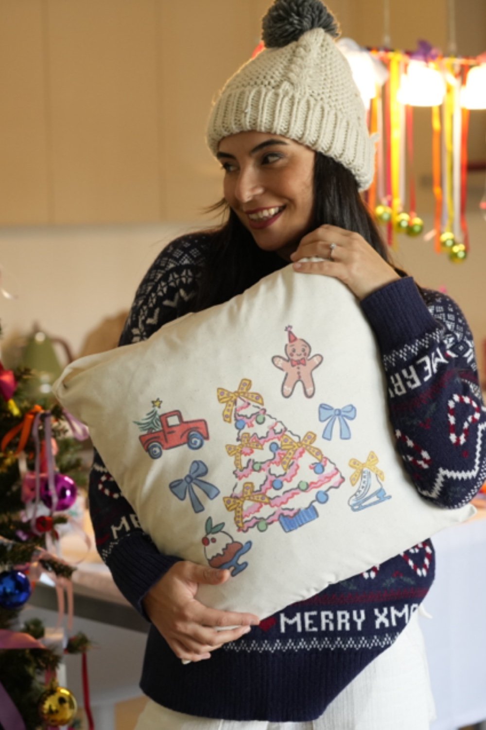 Yılbaşı ruhunu evinize taşıyacak şık ve eğlenceli tasarım! Xmas Icons yastık kılıfı, üzerinde yılbaşı ağacı, kurdele ve ginger cookie gibi ikonik figürlerle yılbaşı coşkusunu dekorasyonunuza katıyor.