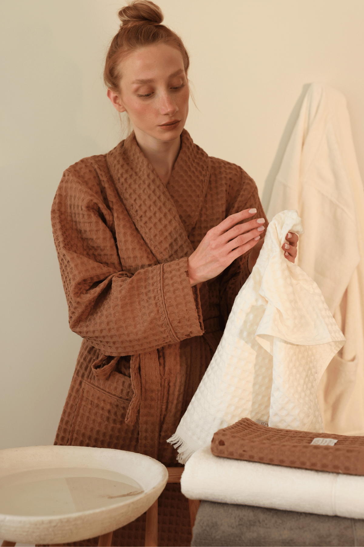 Doğal dokusu ve ipeksi yumuşaklığıyla cildinize nazikçe temas eden Aura, banyodan sonra ya da gün içinde keyifle kullanabileceğiniz şık ve fonksiyonel bir parçadır.
