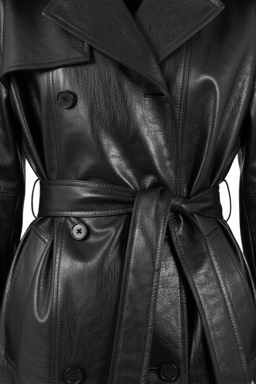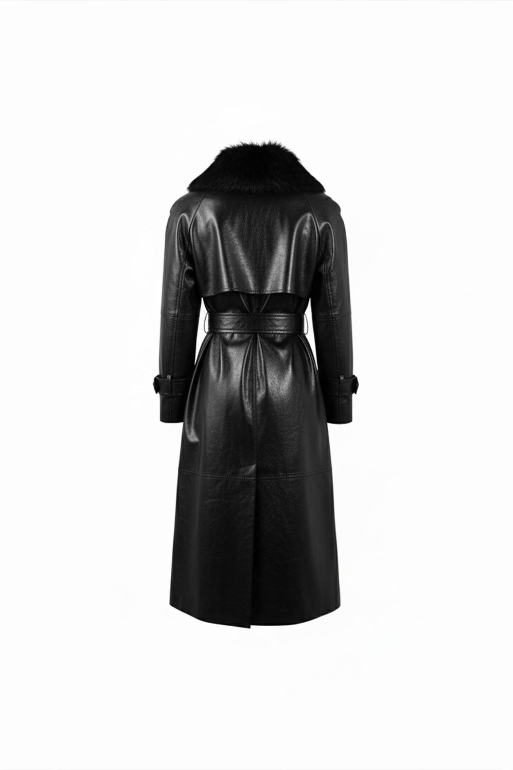 Kürk yaka detayıyla zenginleşen bu siyah deri trençkot, güçlü ve zarif bir siluet sunuyor. Şıklık ve karakteri bir araya getiren iddialı bir parça.