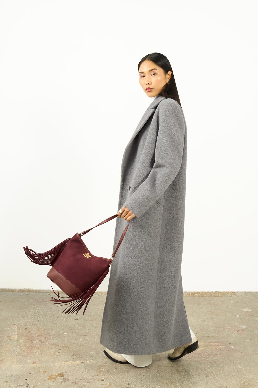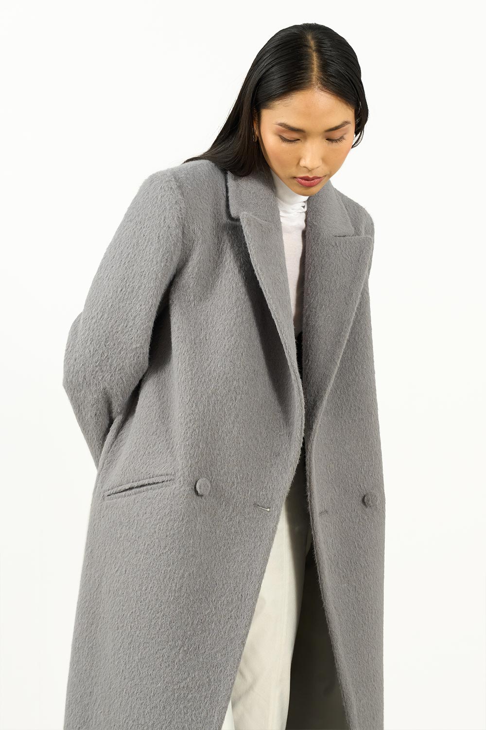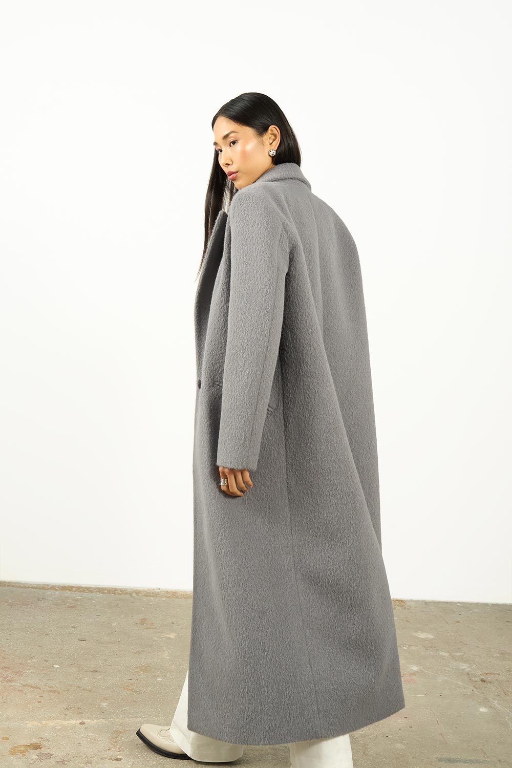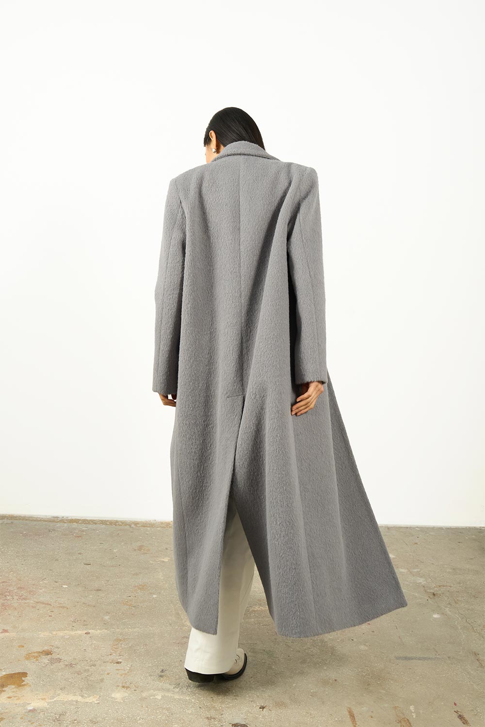 Oversize Kaşe Kruvaze Kaban Gri rengiyle zamansız ve şık bir stil sunar. Geniş kesimi sayesinde rahat ve modern bir duruş sağlarken, büyük düğme detayları tasarıma hareket katar.