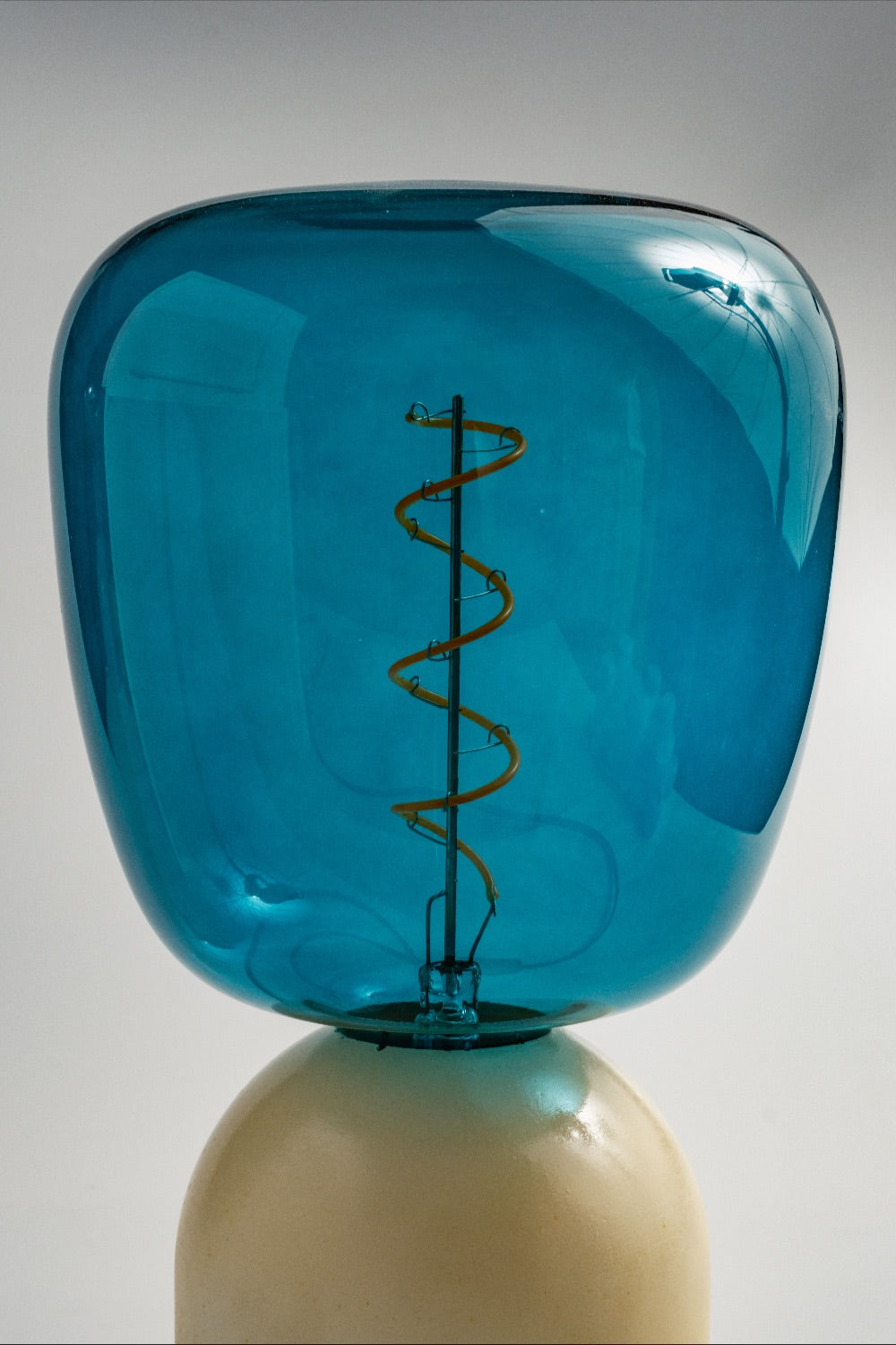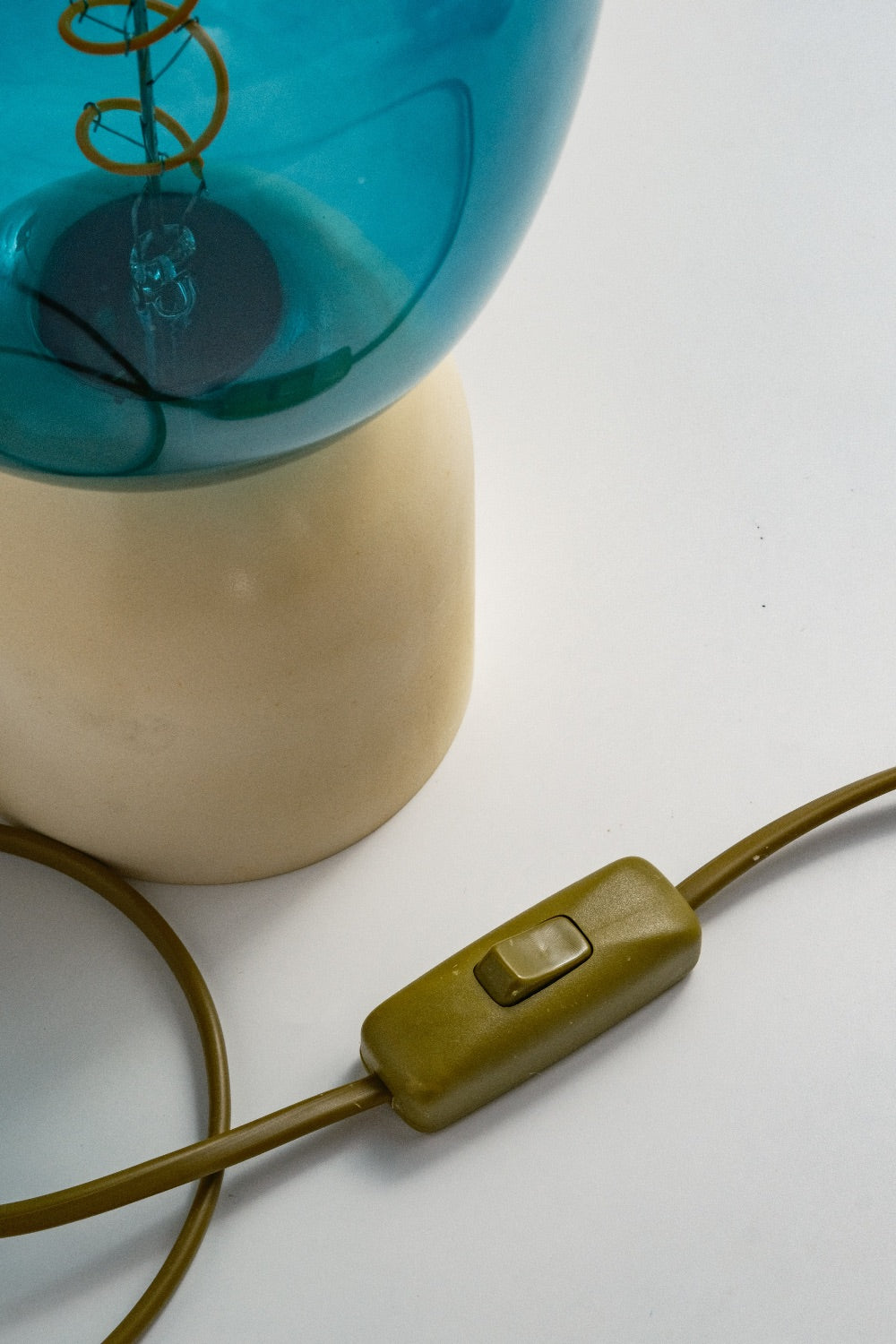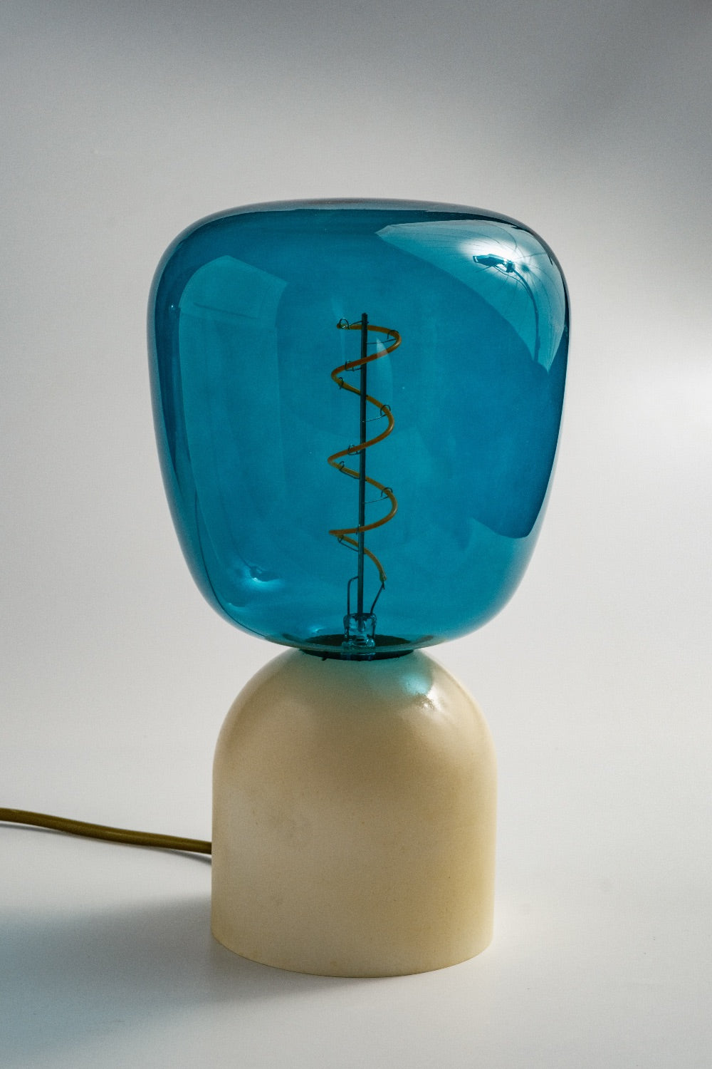 El yapımı beton kaide ve özel renkte seçilmiş cam şapka ile tasarlanmış masa lambası