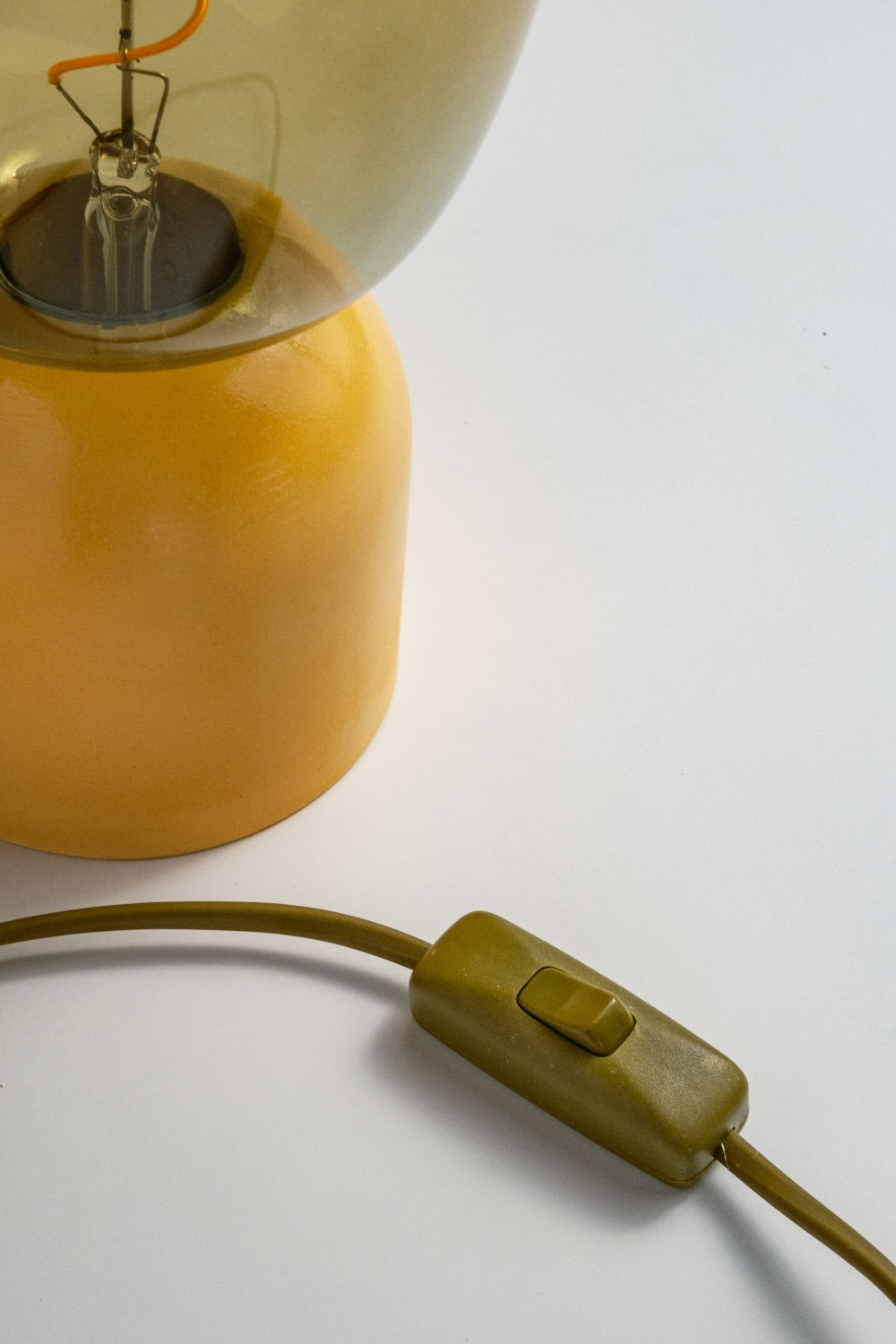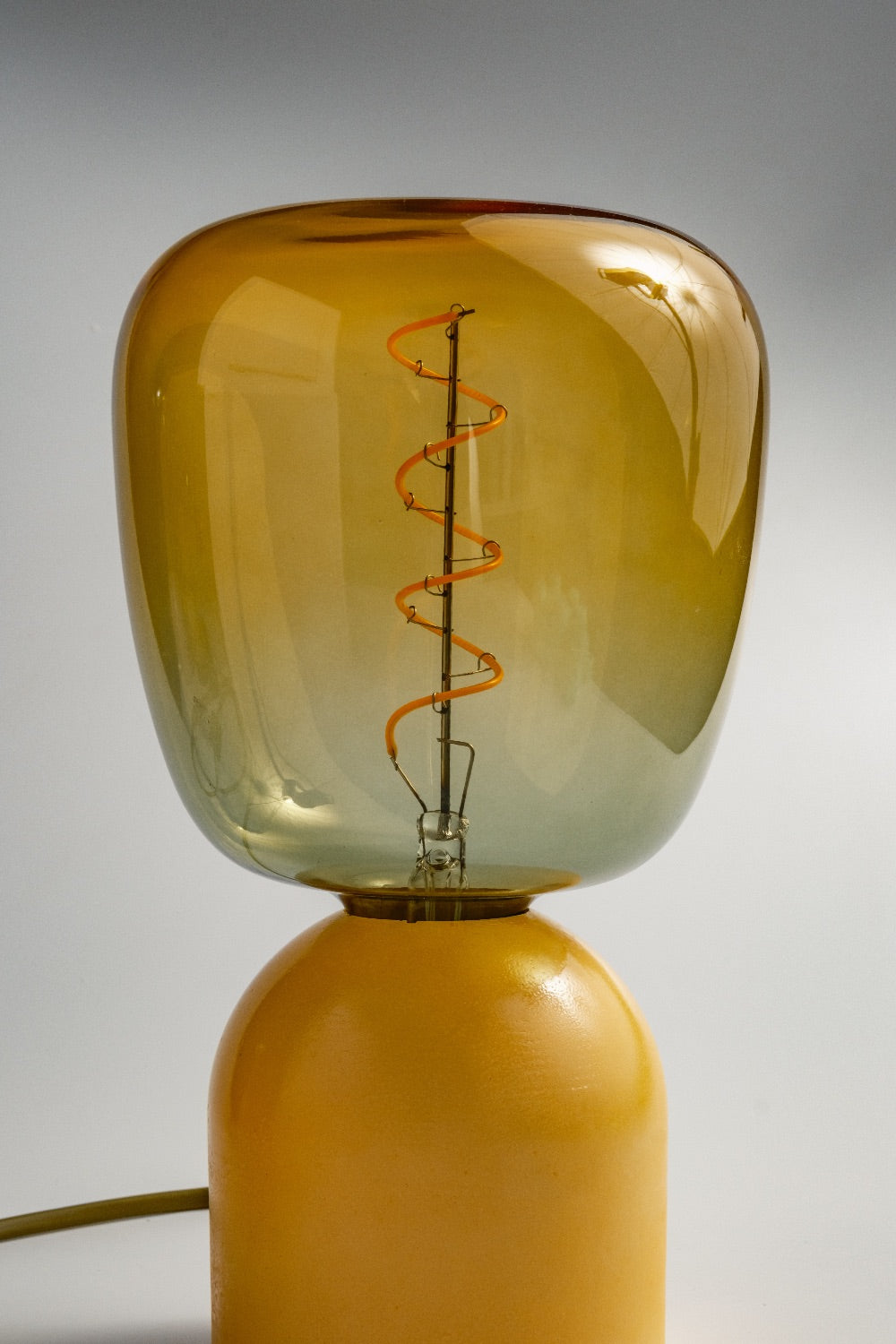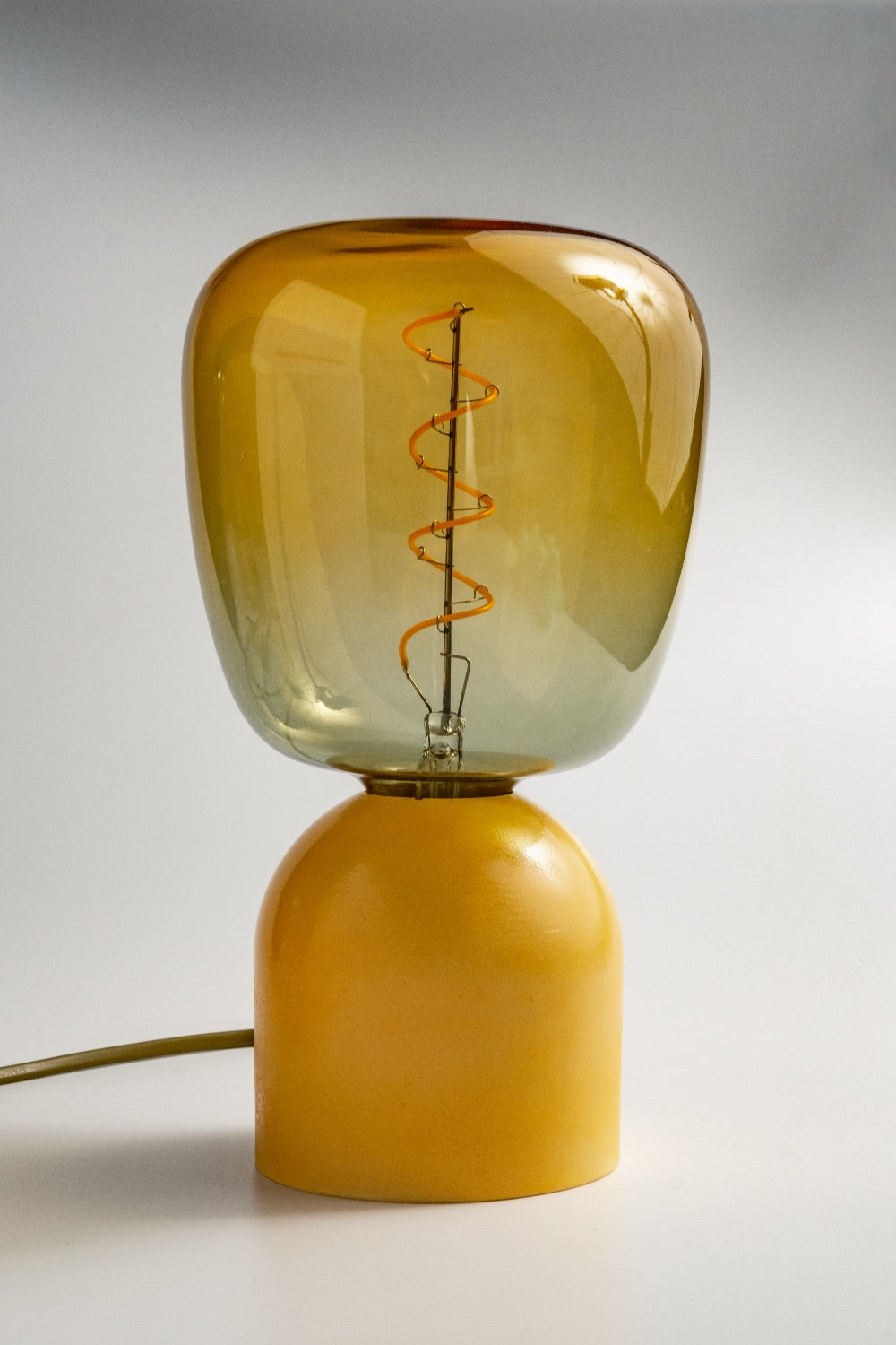 El yapımı beton kaide ve özel renkte seçilmiş cam şapka ile tasarlanmış masa lambası
