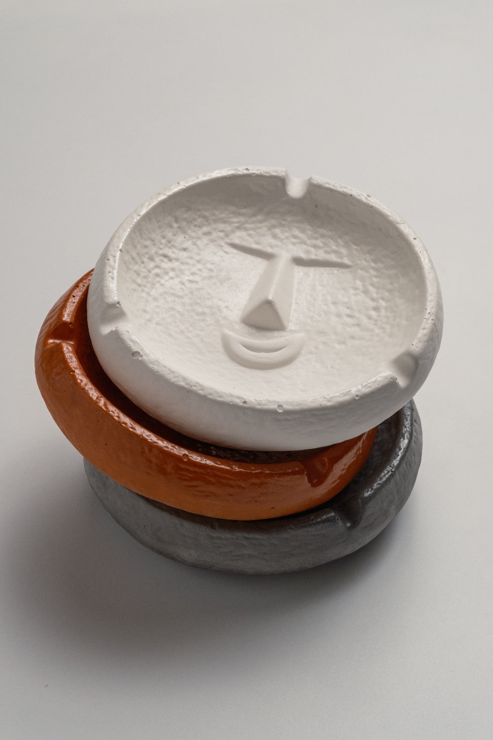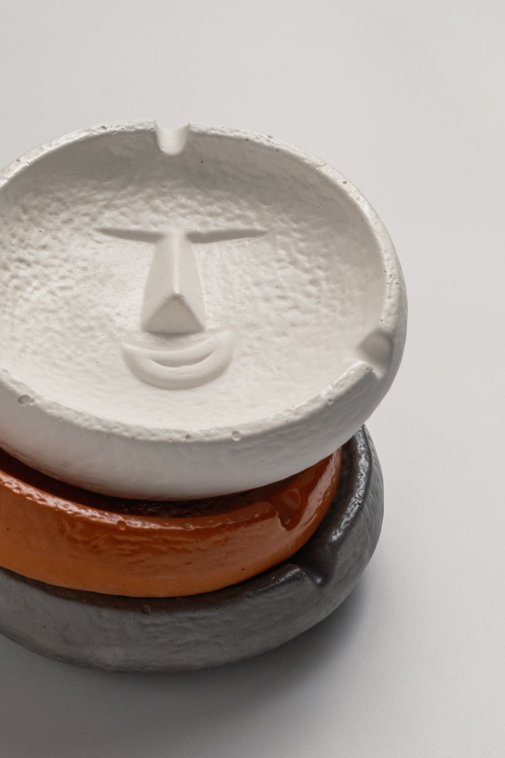 Gülümseyen yüz figürüyle dikkat çeken bu dairesel küllük, fonksiyonelliği eğlenceli bir detayla birleştiriyor.