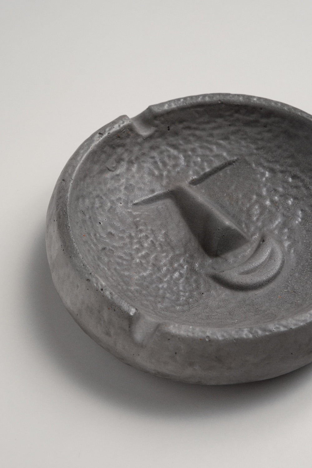 Gülümseyen yüz figürüyle dikkat çeken bu dairesel küllük, fonksiyonelliği eğlenceli bir detayla birleştiriyor.