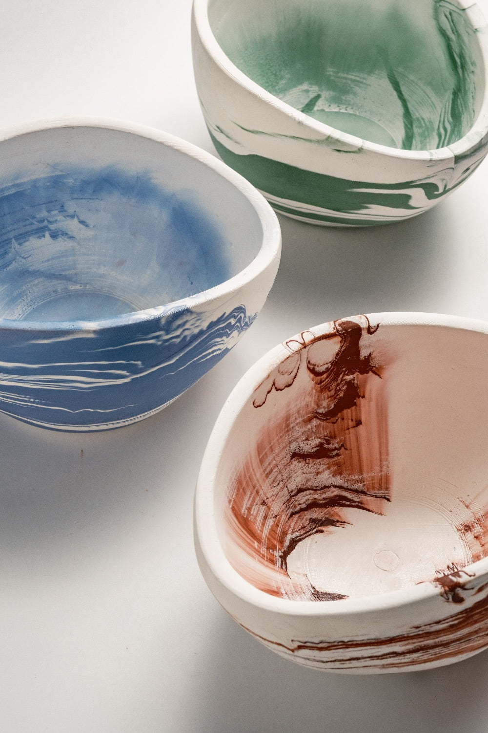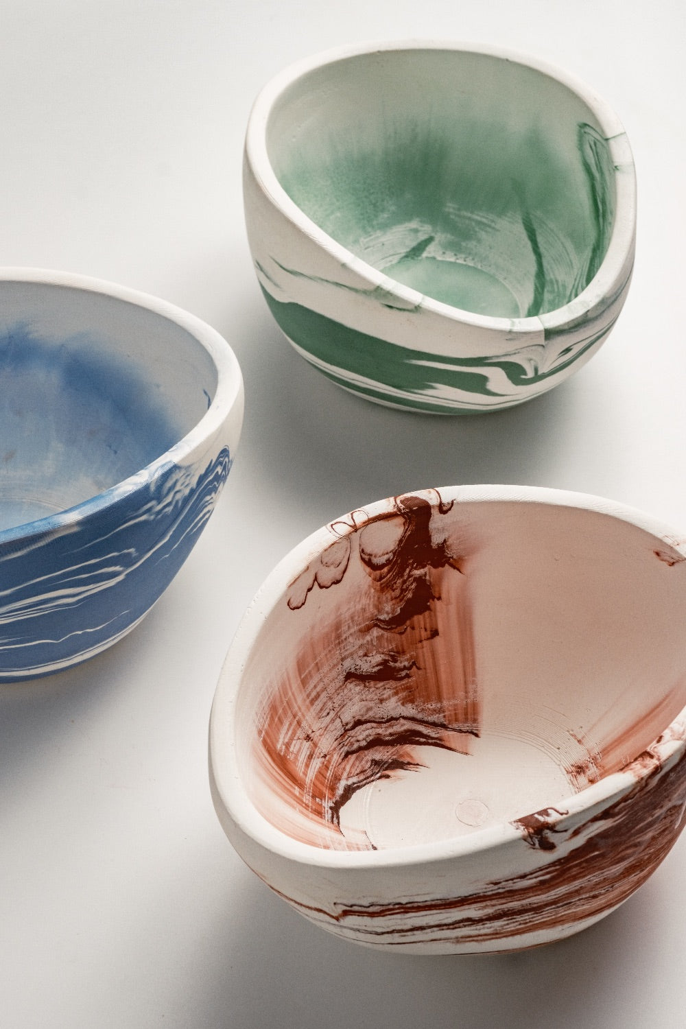 Kadawanti’nin Fethiye’deki küçük atölyesinde şekillenen bu beton kaseler, geleneksel el işçiliğini modern çizgilerle buluşturuyor. Asimetrik formu, her bir parçanın tekil ruhunu yansıtıyor. Renkler, üretim sırasında doğal olarak dans ederken, her ürün adeta birer minik doğa manzarası gibi ortaya çıkıyor.