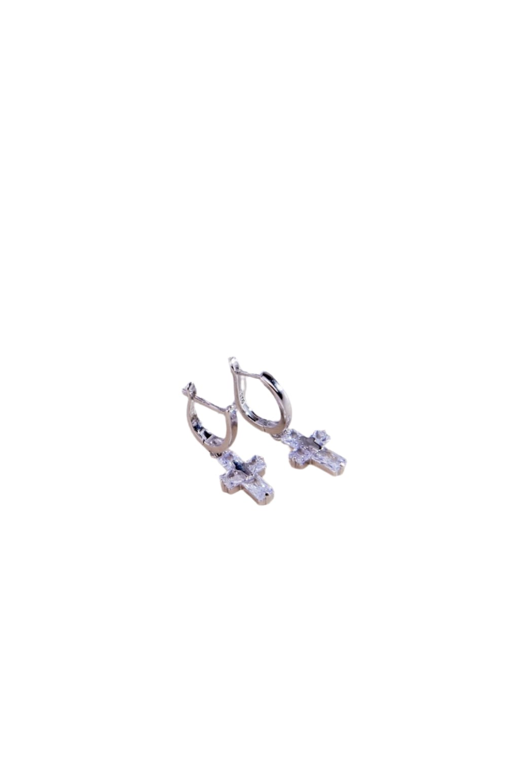 Minute 925 Ayar Gümüş Baget Taşlı Haç Küpe