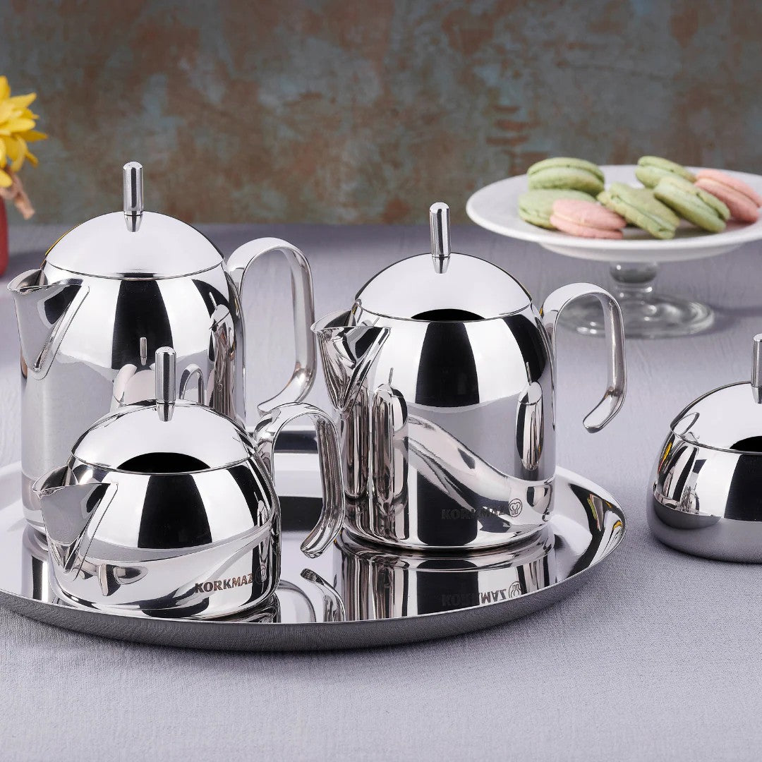 Korkmaz A280 Pera Set, çay ve kahve sunumlarını şık ve dayanıklı bir tasarım ile bir araya getirir.