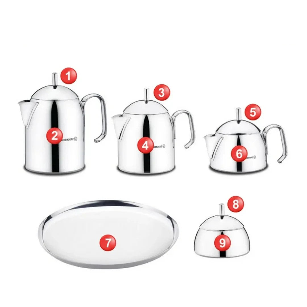 A280 Pera 9 Parça Çelik Çay Kahve Seti