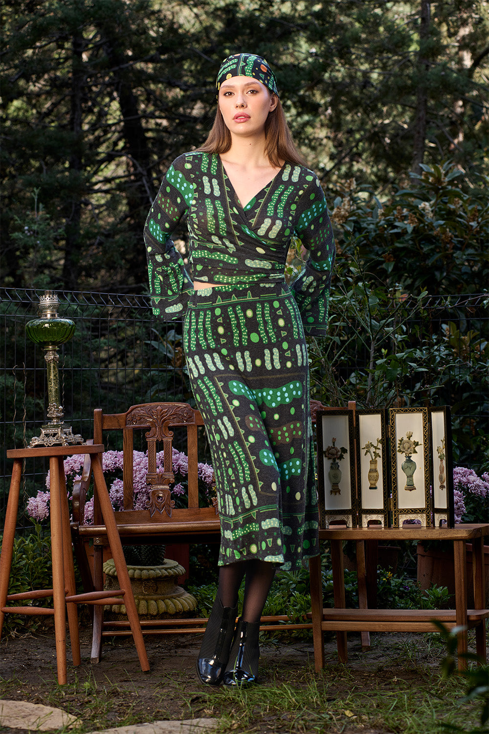 Desenler sanatçı Defne Camcıoğlu'nun resimlerden oluşmuştur,%82 Viskon, %13 Akrilik, %5 Elastan içeren örme bir kumaştır,Kumaş fırçalı/tüylü sıcak bir tuşeye sahiptir,Desenler dijital baskı yöntemi ile basılmıştır,Ürünler likralı, esnek kumaş yapısının uygunluğu gereği birleşik beden olarak üretilmiştir; S/M: 36-38 M/L: 38-40 bedenlerini karşılamaktadır,Ürün lastikli ve yüksek beldir.
