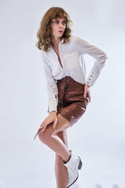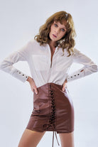 Önünde bağlama detayı, arkasında gizli fermuarı bulunur