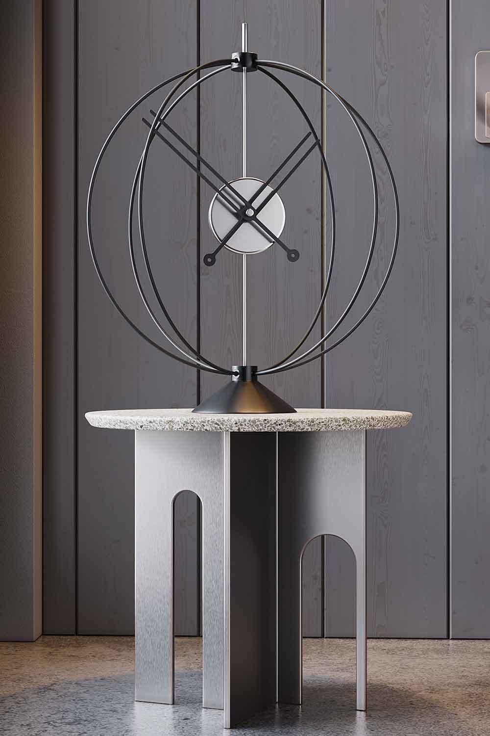 Atom dekoratif masa saati, parçacıkların mükemmel uyumunu temsil ediyor. Her bir parçacığın önemli bir rolü olduğunu ve bir araya gelerek muhteşem yapıları oluşturduğunu hatırlatıyor.