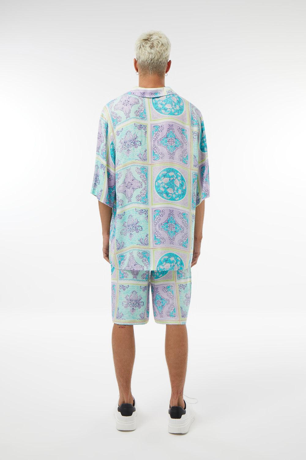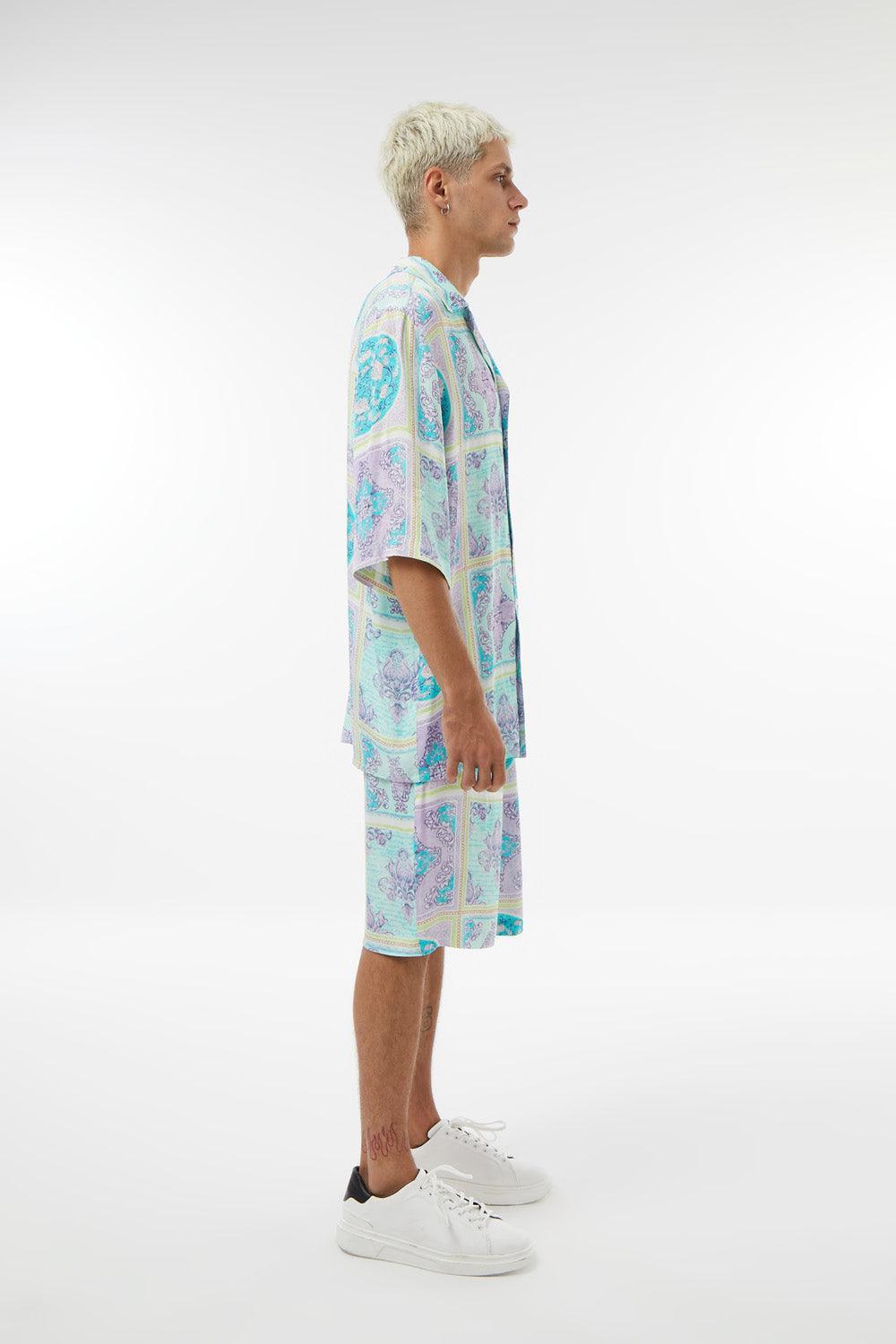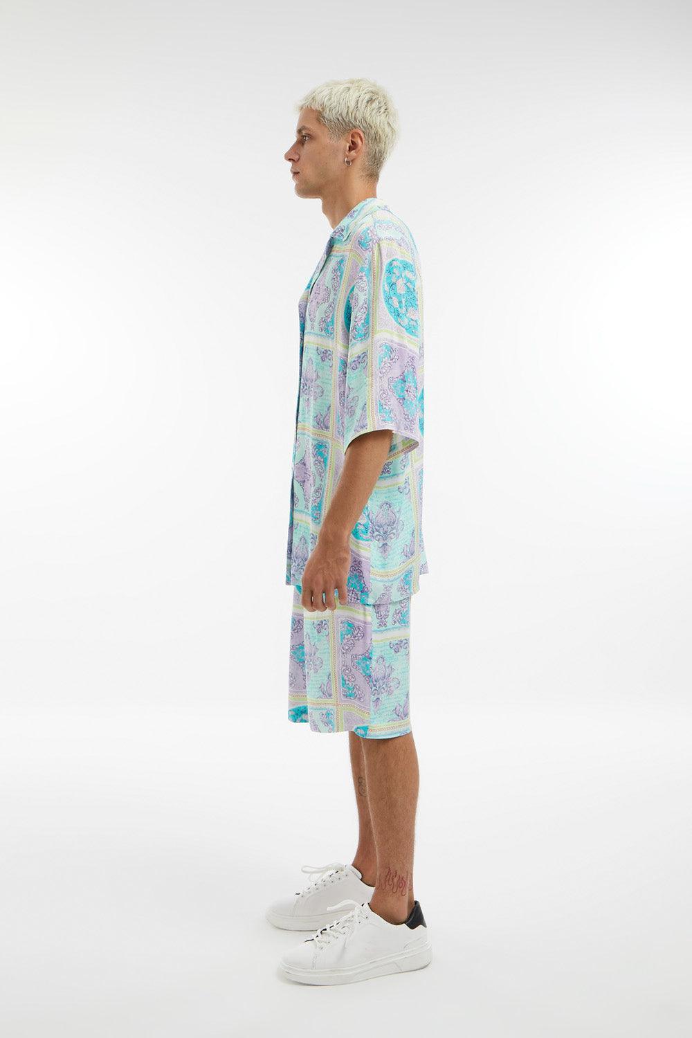 Kısa Kollu Baskılı Saten Gömlek