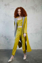 Hardal rengi vegan deri pantolon