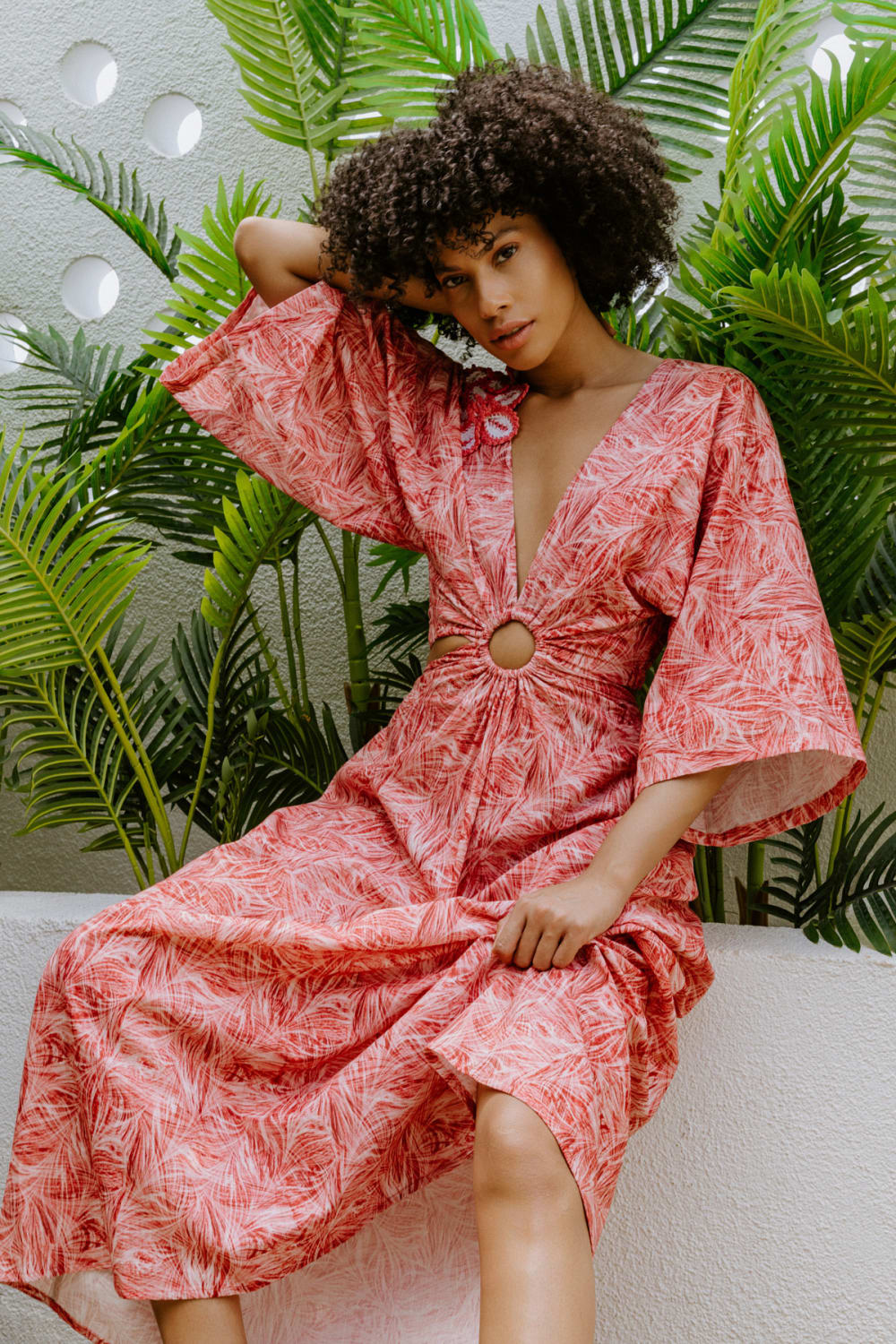 Yaka el işlemeli, belinde ufak açıklığı olan hem gündüz, hem de gece çabasız bir şıklık isteyenler için ideal bir elbise