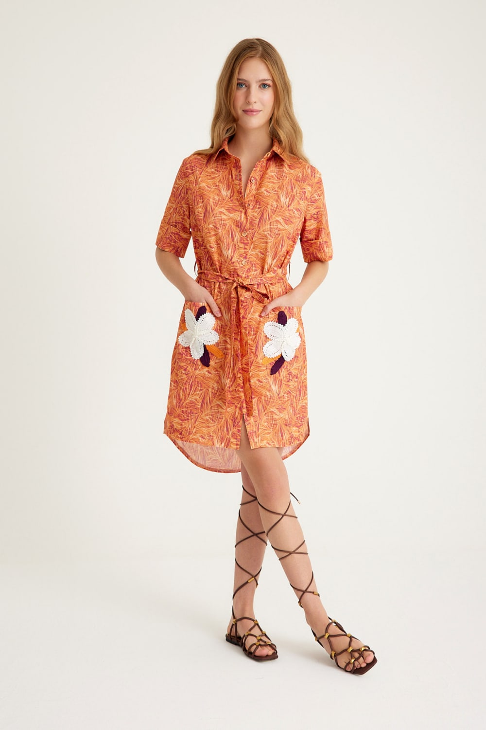 Ceplerindeki el işlemeli çiçek nakışlarıyla , belden bağlamalı mini gömlek elbise yazı her türlü okazyonda kurtarıcı olmaya aday.