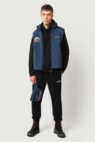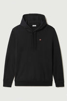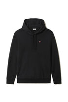 Hoodie. Fixed crossover hood. Ribbed trims. Embroidered details.