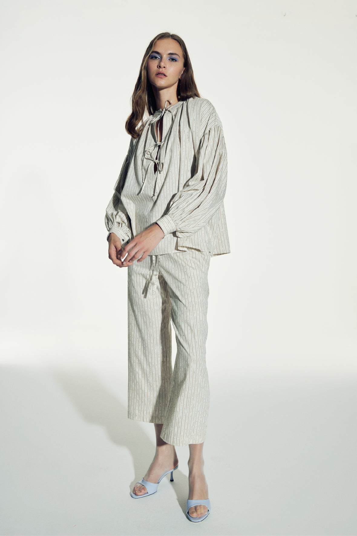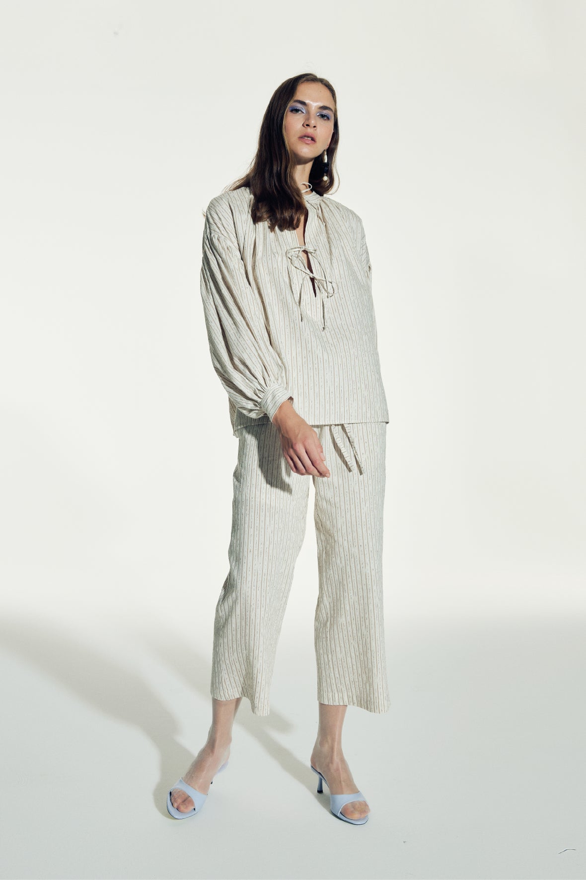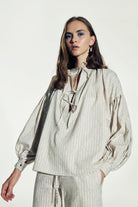Eve gömlek, şık çizgili koton ve keten karışımı kumaşıyla öne çıkıyor. Bu gömlek, zamansız çizgili deseniyle klasik bir tarz sunarken, koton-keten karışımı kumaşı ise rahatlık ve dayanıklılık sağlıyor. Denimlerle ve şortlarla rahatça kombinlenebilen bu gömlek, gardırobunuzun vazgeçilmez parçalarından biri olacak. Ayrıca diğer renk seçenekleri olan Beyaz, Siyah, Lila ve Mavi çizgili seçeneklerine de göz atabilirsiniz.