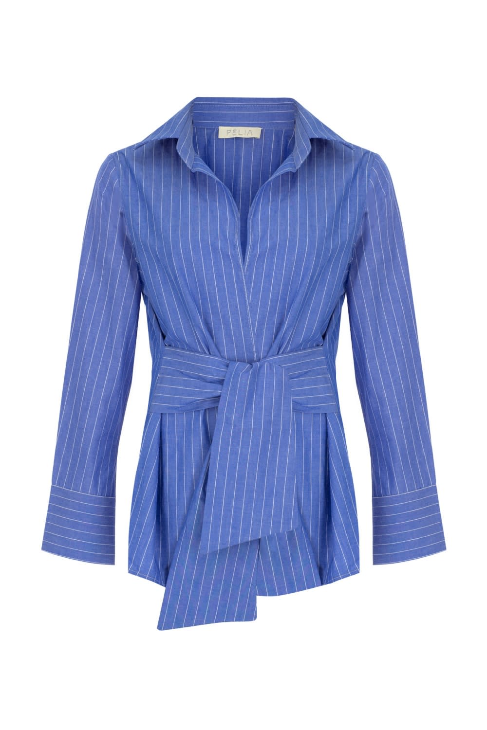 Monica Mavi Çizgili Bağlamalı Gömlek Elbise