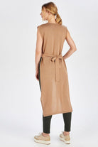 Arkası Uzun Kemerli Kolsuz Kadın Triko Bluz