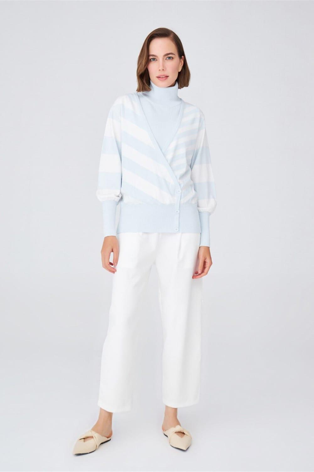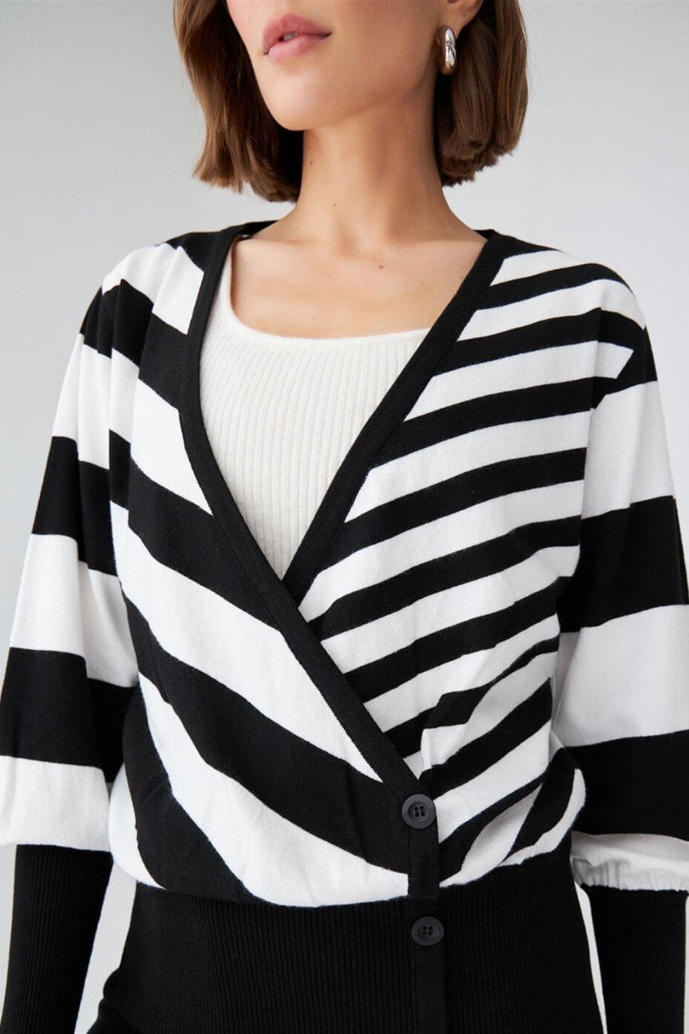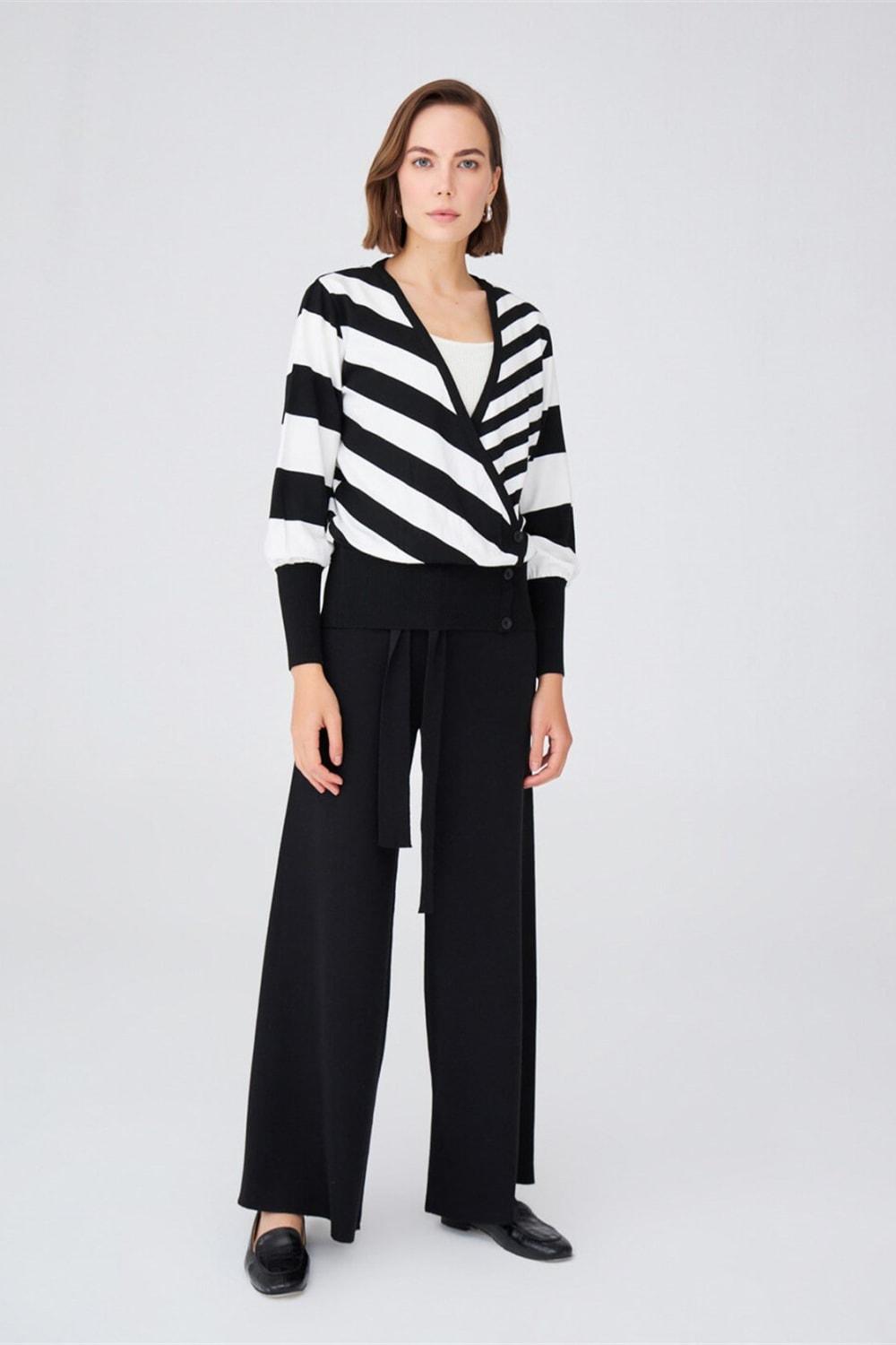 Çizgili, Kolları Dökümlü, Kruvaze Yaka Mevsimlik BluzStandart Fit