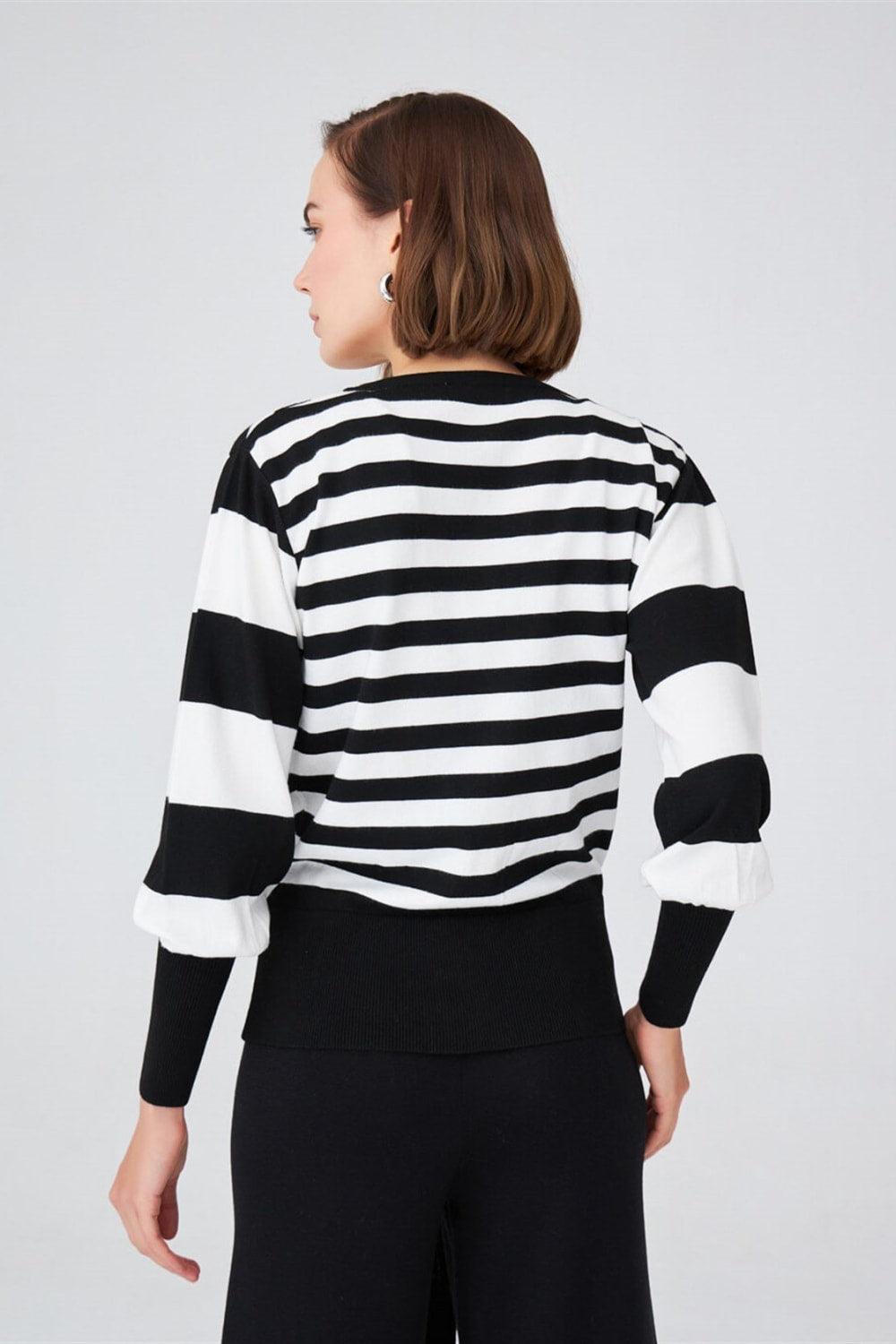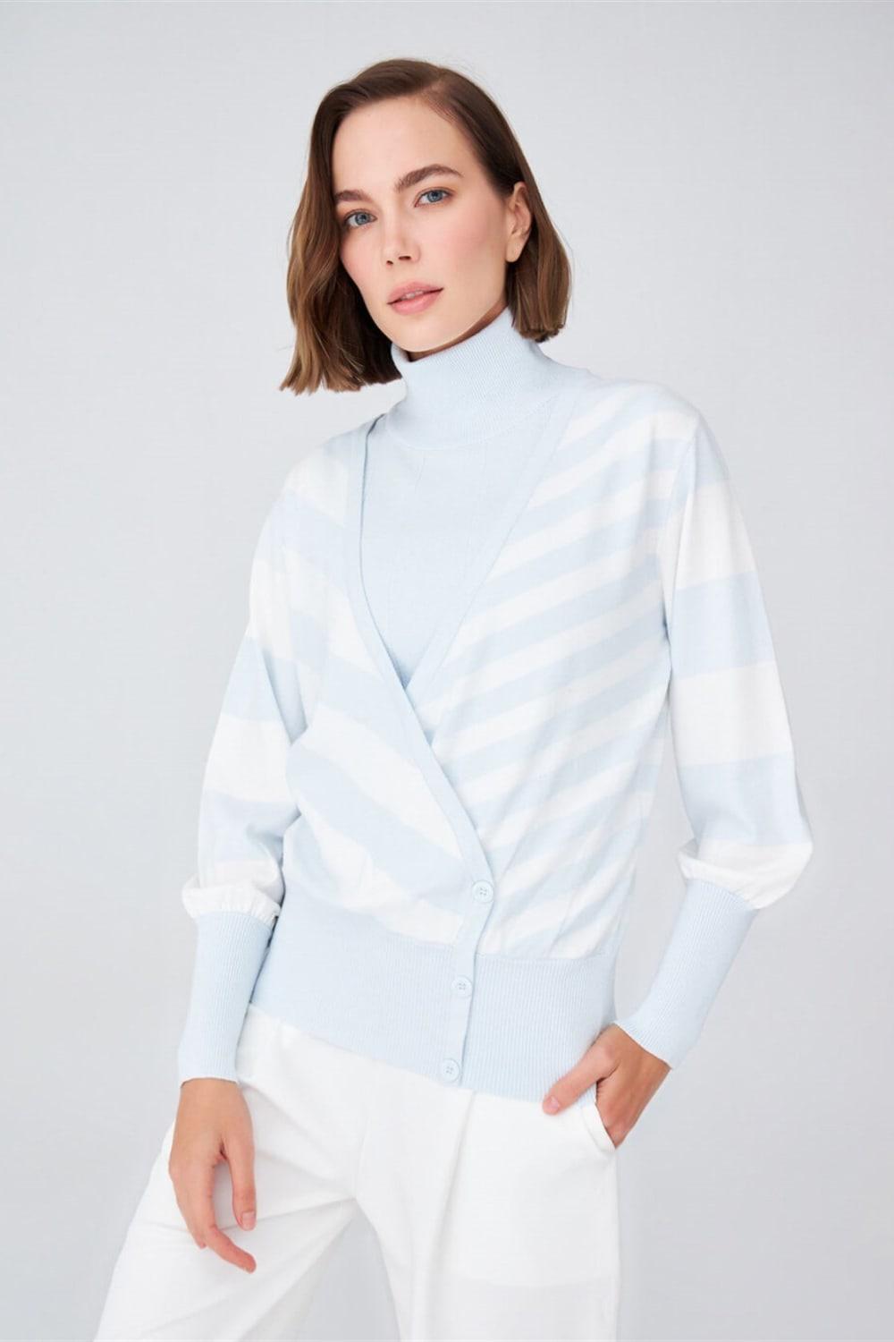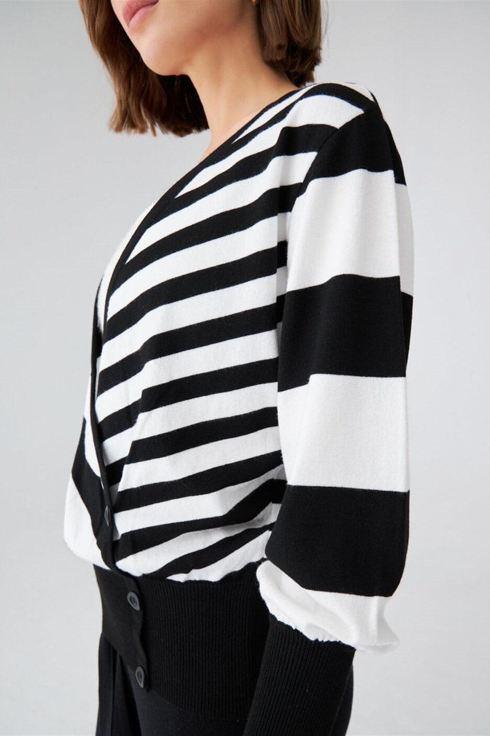 Çizgili, Kolları Dökümlü, Kruvaze Yaka Mevsimlik BluzStandart Fit