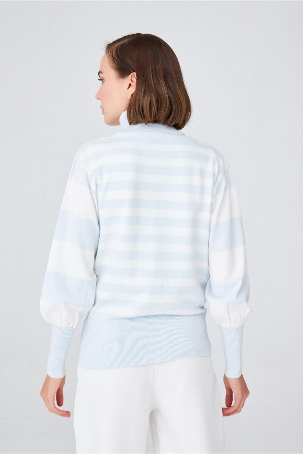 Derin Yaka Dökümlü Kolları Büzgülü Kadın Triko Kazak