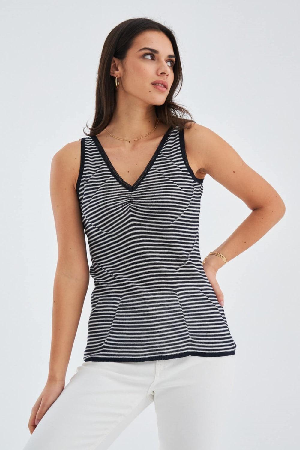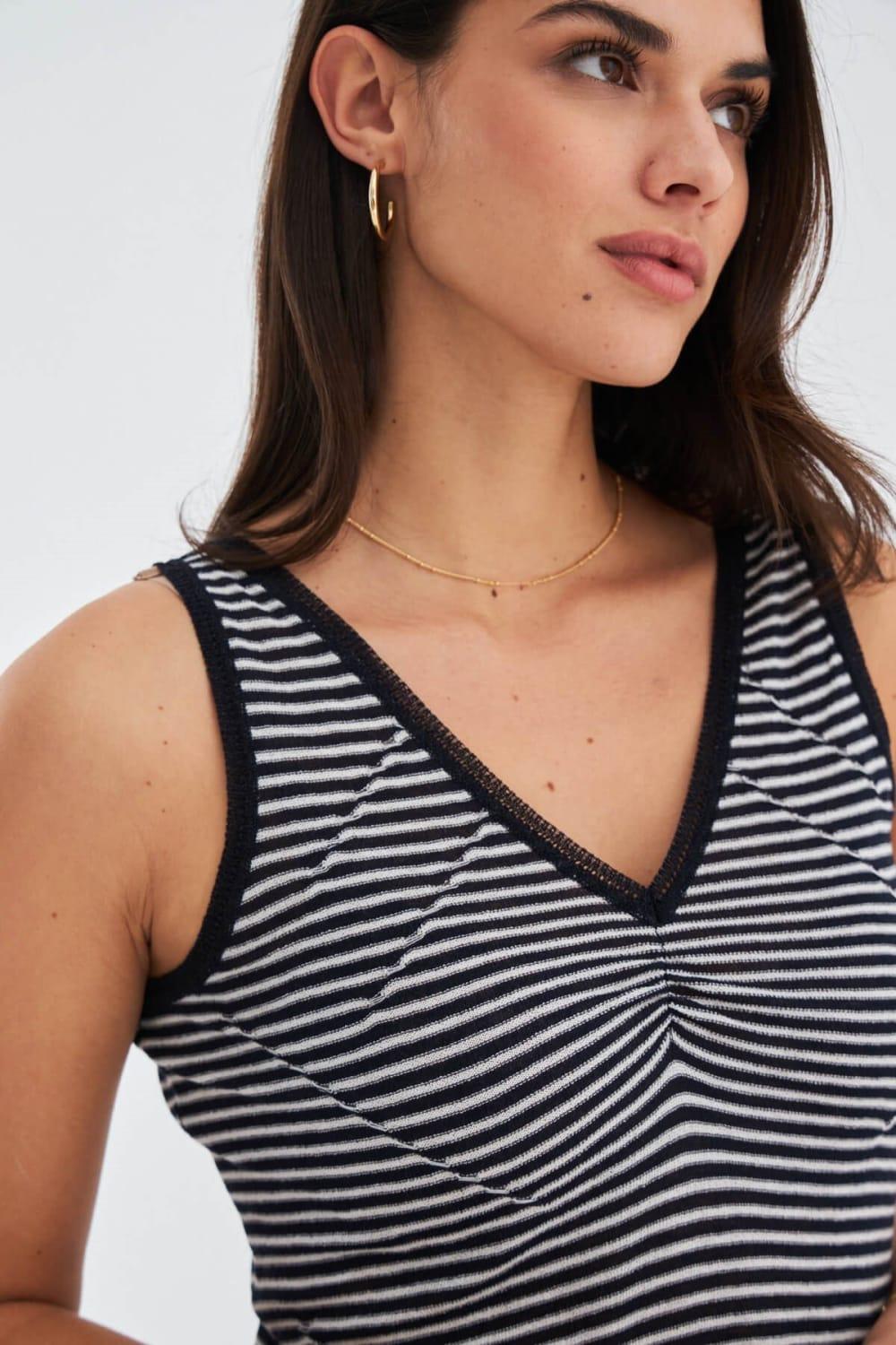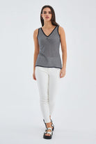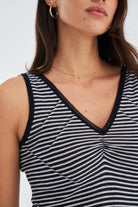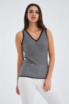 İNce Çizgili V Yaka Kadın Triko Atlet