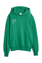 Kış Pisti koleksiyonu, bir buz hokeyi oyununun tüm yüksek oktanlı enerjisiyle boğa gibi geliyor. Sporun Y2K sokak stiline geçişinden ilham alan koleksiyondaki bu kapüşonlu üst, dayanıklı Fransız havlu jarseden yapılmıştır ve göğüs kısmında saten aplike içerir.