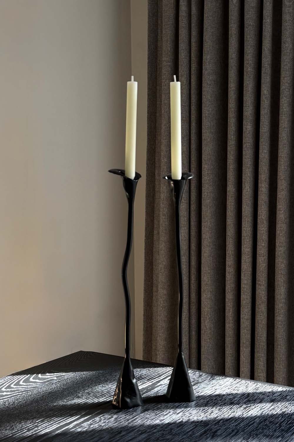 Tekil formun zarafetini ikiye bölüp yeniden birleştiren bir denge oyunu.Solus Duo, birbirine yaklaşmadan bir arada durmanın estetiğini anlatır.Her biri kendi çizgisinde özgün, ama birlikte bir bütünün sessiz gücünü taşır.Mat siyah yüzey, hem ışığı emer hem de formun kıvrımlarında onu yeniden doğurur.Bu ikili, yalnızca bir obje değil mekânda sessizce var olan bir kontrast hikâyesidir.
