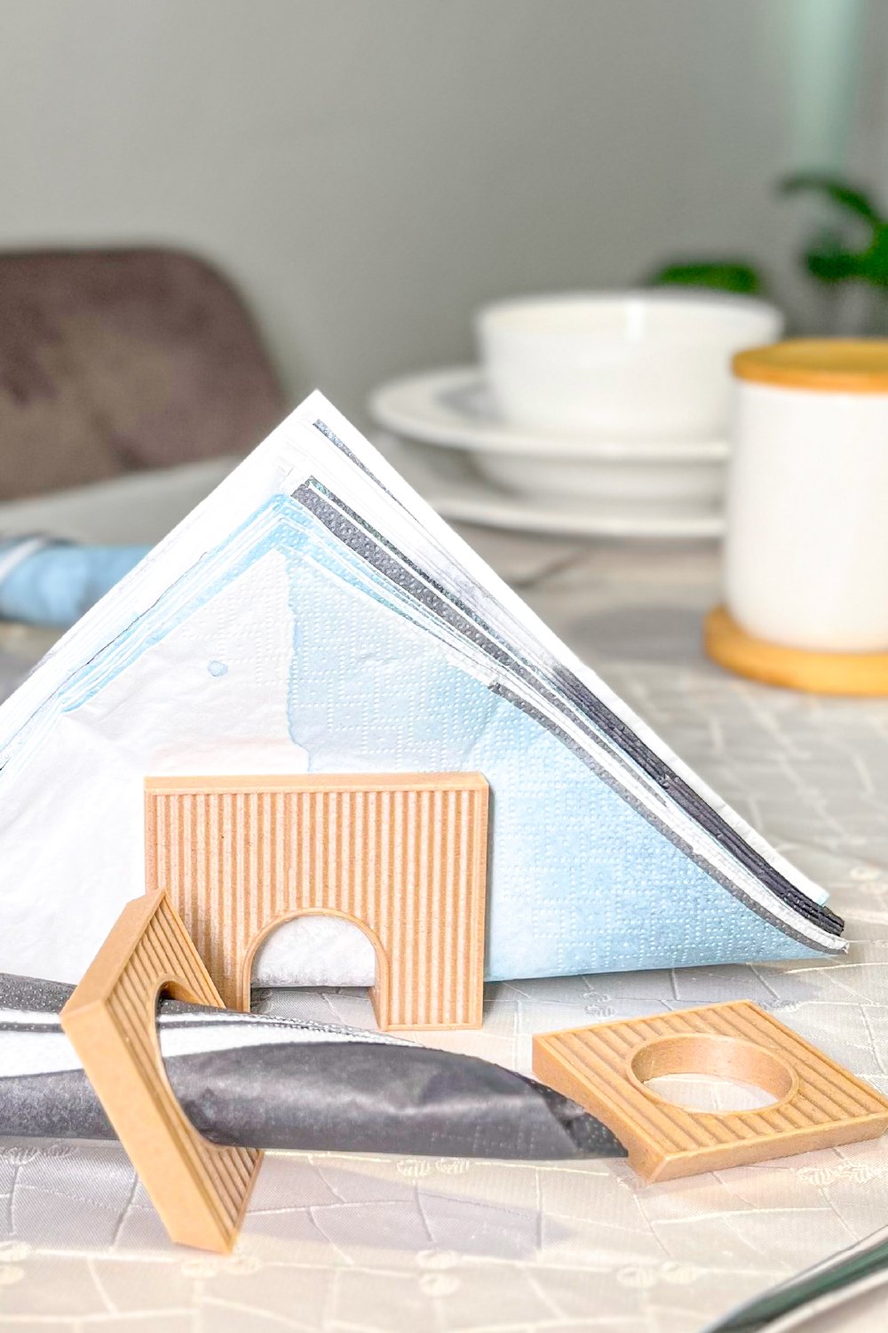 Minimal bir tasarıma sahip olan ahşap katkılı peçetelik seti, sofralarınız için şık ve modern bir görünüm sunar. PLA wood malzemesi ile üretilen bu peçetelikler, sağlığa zararsız bioplastik yapısıyla güvenle kullanılabilir. Modern formu ve zarif yapısı sayesinde her sofraya mükemmel uyum sağlar.