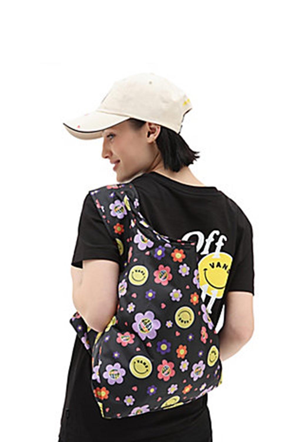 Geri dönüştürülmüş polyesterden üretilen Contortion El Çantası, boydan boya çiçek ve gülen yüz baskılı katlanabilir bir pazar çantasıdır. Asla unutmamak için kolayca saklayın ve alışverişinizi ikonik Off The Wall stiliyle yapın.